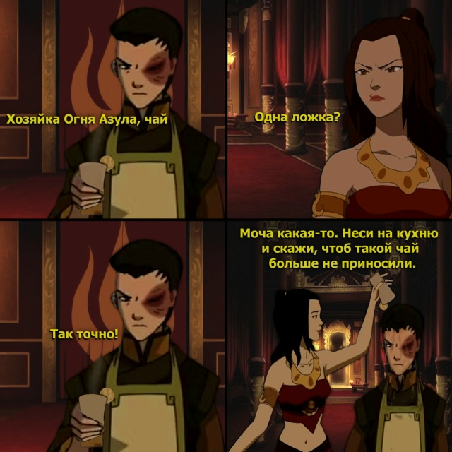 В сериале таковых не было, но разве не в комиксах мы видим, как офицеры и чиновники восстают против Зуко в пользу предыдущего режима Озая, и вполне добровольно? В таком случае и про Азулу не мешало бы вспомнить, она его ближайший соратник