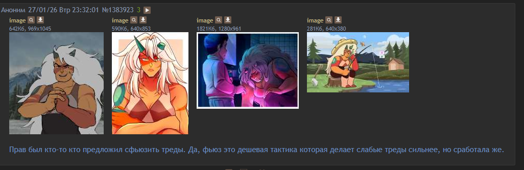 >>1383906 Как будет говориться в >>1383923 >Прав был кто-то кто предложил сфьюзить треды. Да, фьюз это дешевая тактика которая делает слабые треды сильнее, но сработала же.