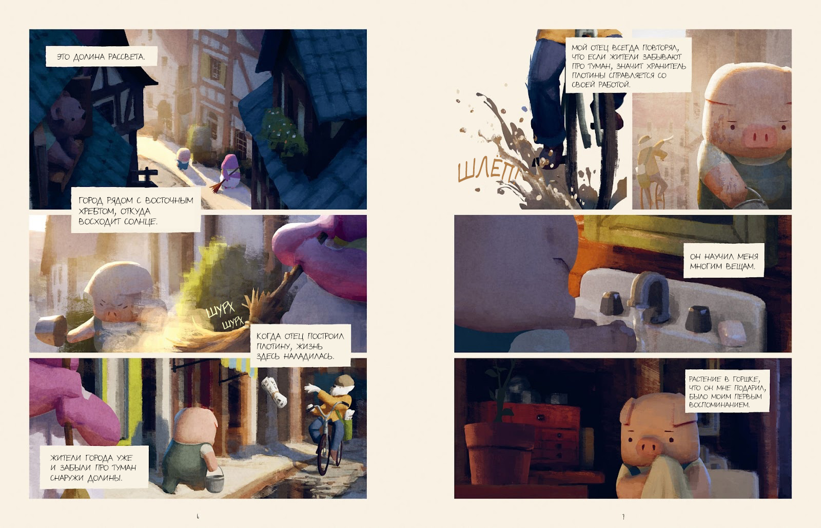 Комикс о приключениях антропоморфных зверят, которые живут в единственном уцелевшем в мире городе. Мир уничтожен смертоносным чёрным туманом. Остался лишь один город, жители которого, казалось, и не замечают того, что происходит за его пределами, продолжая жить отстранённой идиллической жизнью. Но мало кто знает, что своим благополучием город обязан одному маленькому свинёнку, присматривающему за плотиной. Ведь только плотина способна сдержать гибельный туман, оставляющий после себя лишь иссохшие мёртвые деревья.
