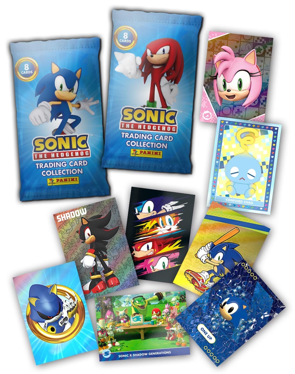 В Германии издали ахуенский альбом с пиздатыми наклейками, которые любому фану будет не стыдно прилепить себе куда угодно, и ещё альбом по Соник Прайму. Я написал представителям в РФ, спросил, планируется выпуск или нет. Там ответили, что "правообладатель ограничил использование лицензии", то есть тупо запретили всё связанное с ежом выпускать.