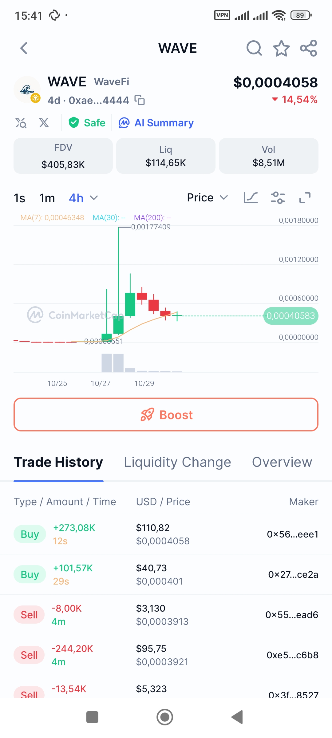 сап такая история накупил на 161 бакс я значит wavefi теперь монет дохуя просто свапнул и все и все прошло ок пробую обратно свапнуть на бнб не получается никак, то одно то второе, думал ладно газ докинул еще 10 баксов снова ничего, пока гавнина в ноль не ушла хочу обратно сделать но не знаю как обменять ее помогите пожалуйста