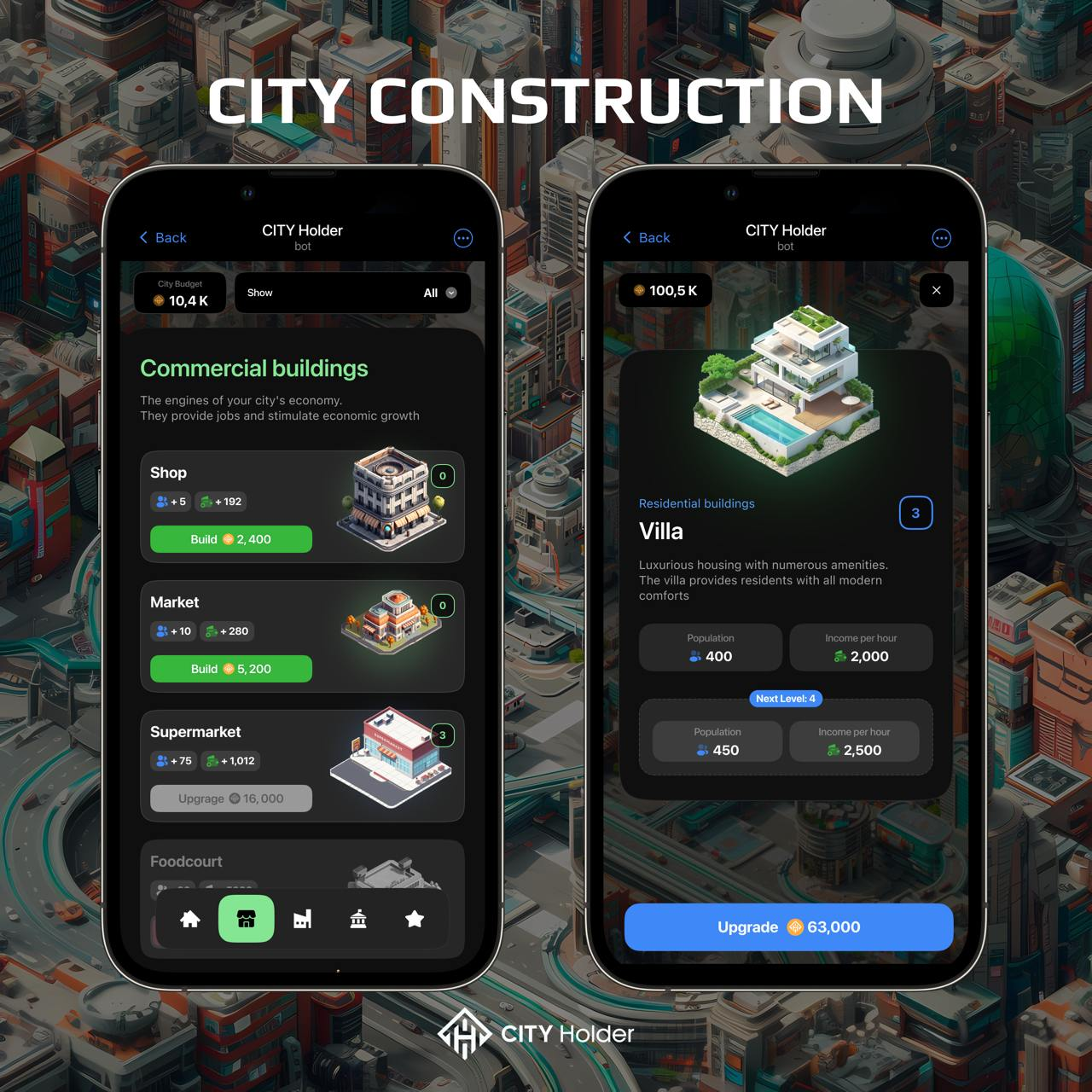 City Holder - новая игра в жанре Build-to-Earn, в которой, отстраивая и улучшая город и здания, пользователь получает токены проекта, которые впоследствии можно будет вывести и залутать профит.