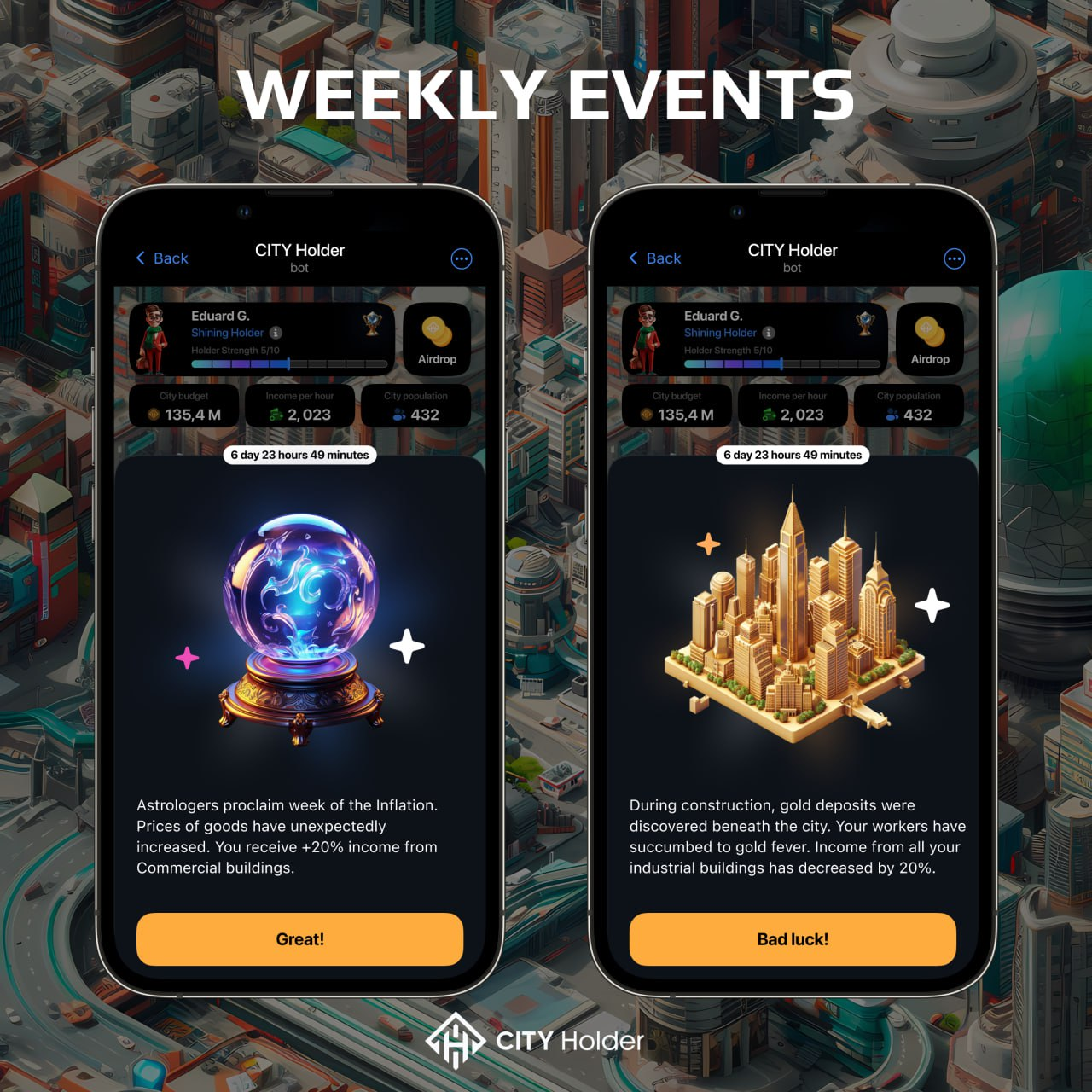 Поэтому тут обсуждать особо нечего, а вот что действительно интересно - ежеденельные ивенты. Лично мне напоминает старых-добрых HoMM 3, с их "астрологи объявили неделю профита, количество получаемого айрдропа увеличивается вдвое", что добавляет игре шарму и некоего интереса, хотя бы на первое время.