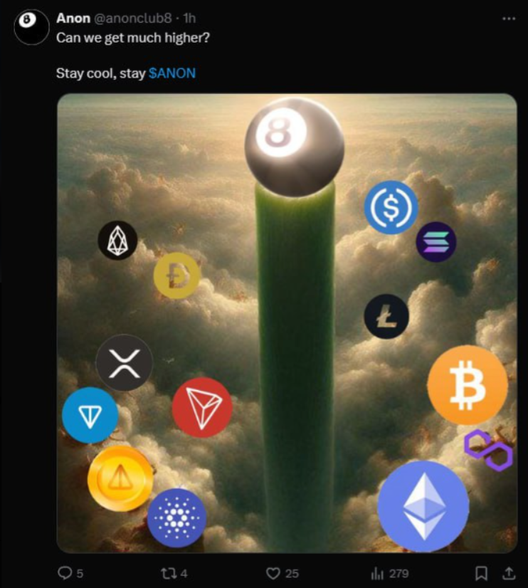 Появился только несколько дней назад. В тг чате 8 club для анонимных номеров Саша Плотвинов (это который разарб Notcoin) запустил сбор средств на запуск токена. Всего за 2 часа насобирал $500.000