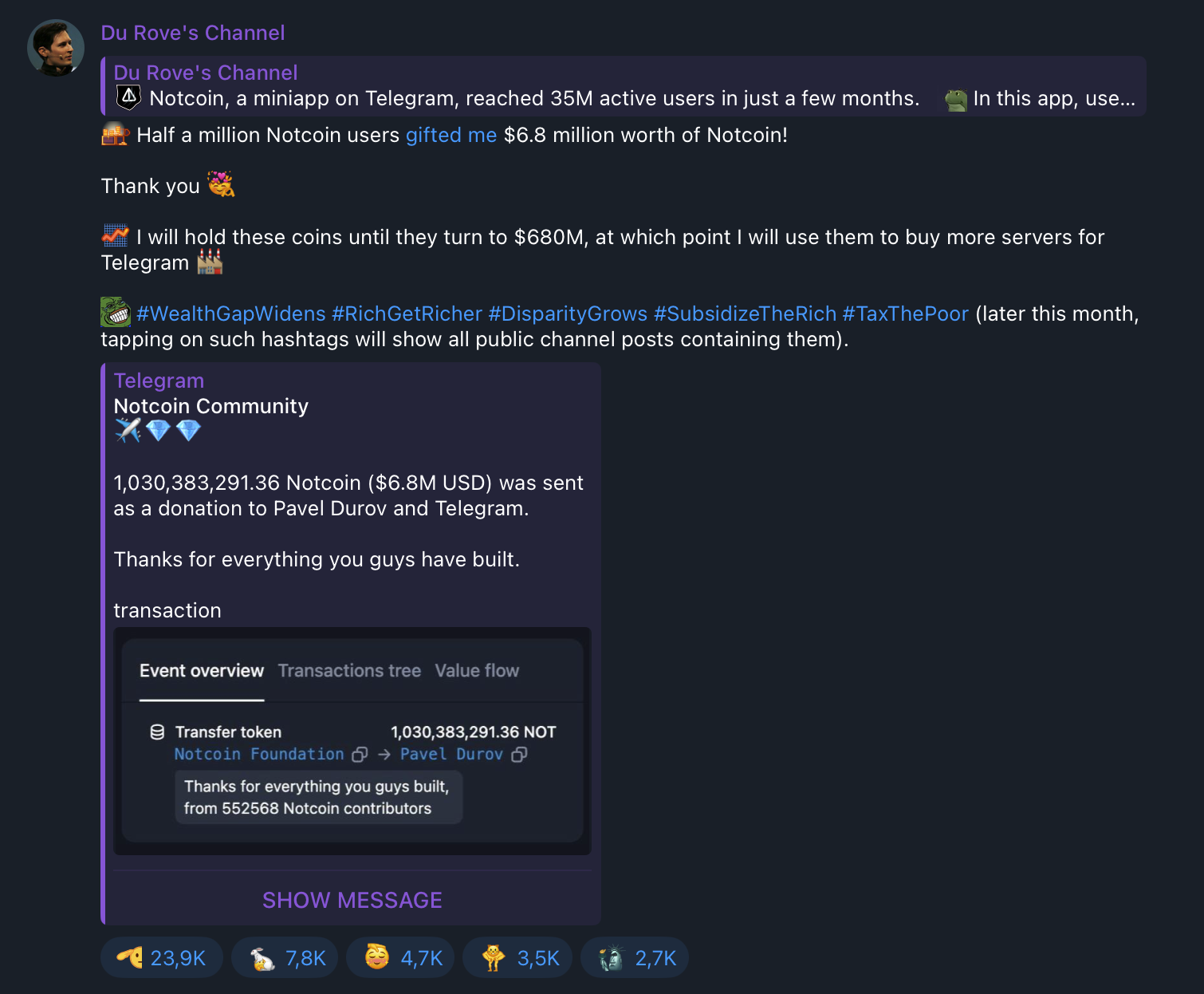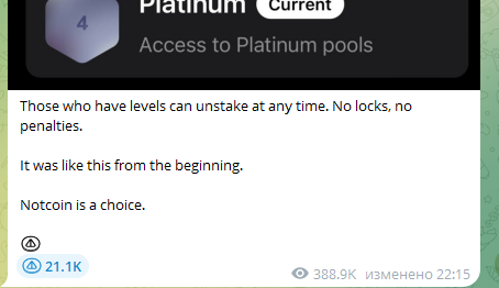 От нас требуется сидеть тихо, майнить монетки, выполнять задания. После того, как все сделают, все будет у нас хорошо. Ноткойн будет по цене USDT - каждый будем кататься как сыр в масле. Главное сейчас сидеть тихо и не суетиться. Никаких ваучеррв на бирже и никаких пресейлов. Просто переждать и всё будет хорошо, там все схвачено.