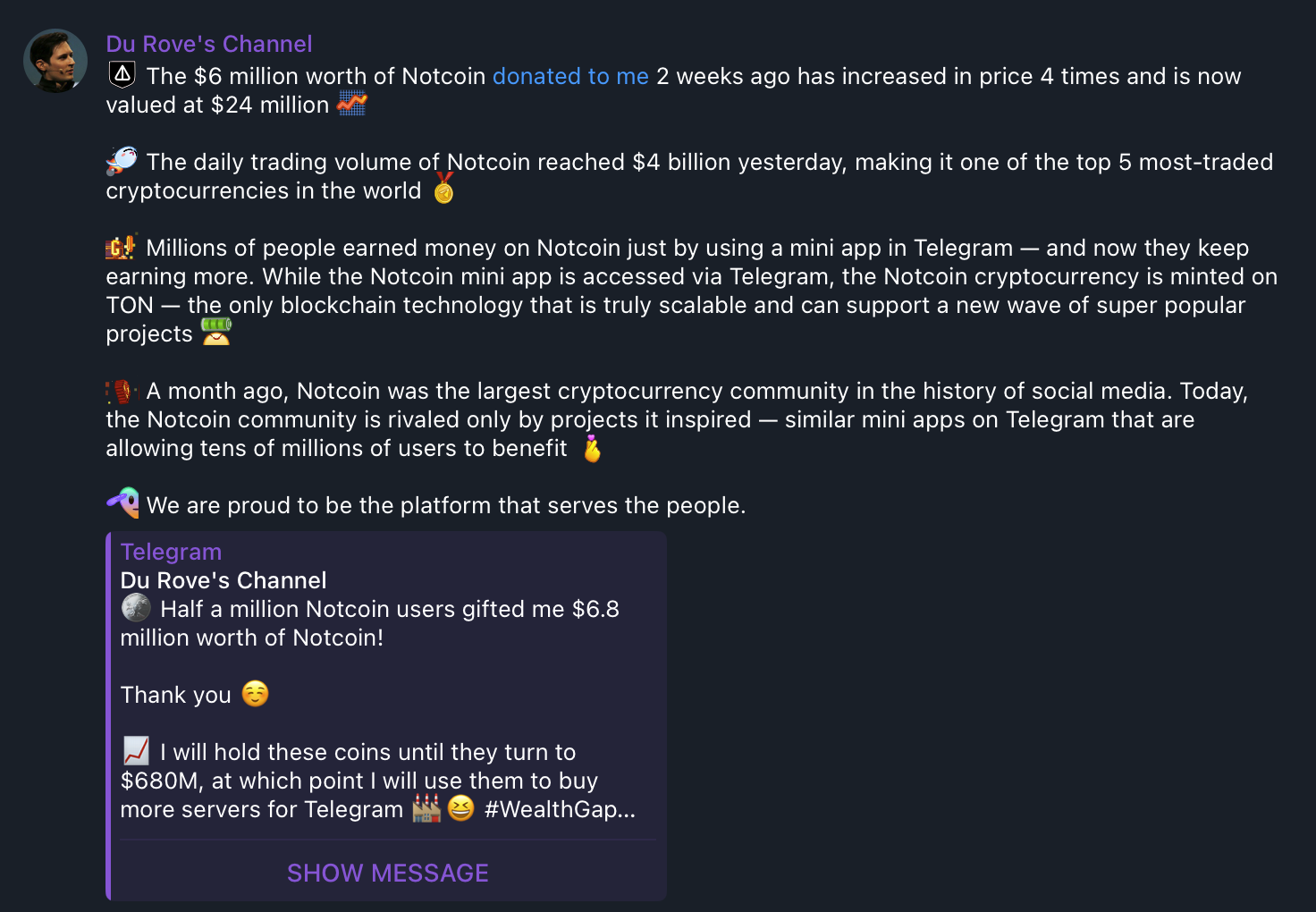 Я верю ноткоину. Все что я прошел, он не объебал. Сказали тыкать- я тыкал, сказали отправить Пашке (без факта возвращения) - я отправил и получил х2, сказали задонать, я не задонатил, ибо второй путь - обман. Сказали холдить, я захолдил.