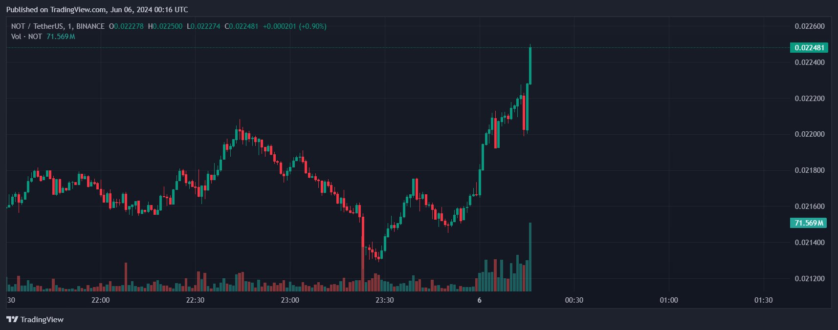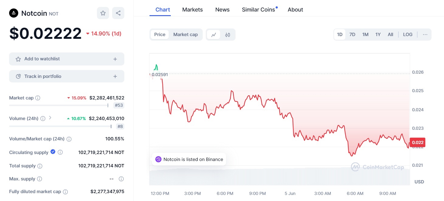 Notcoin (NOT) — это цифровая криптовалюта, цель которой — переопределить традиционные концепции цифровой валюты с помощью уникальной технологии блокчейна. Notcoin, созданный как безопасная, эффективная и масштабируемая платформа, ориентирован на обеспечение быстрых транзакций и низких комиссий. Будучи приверженцем инноваций, Notcoin стремится устранить ограничения существующих криптовалют и способствовать их широкому распространению.