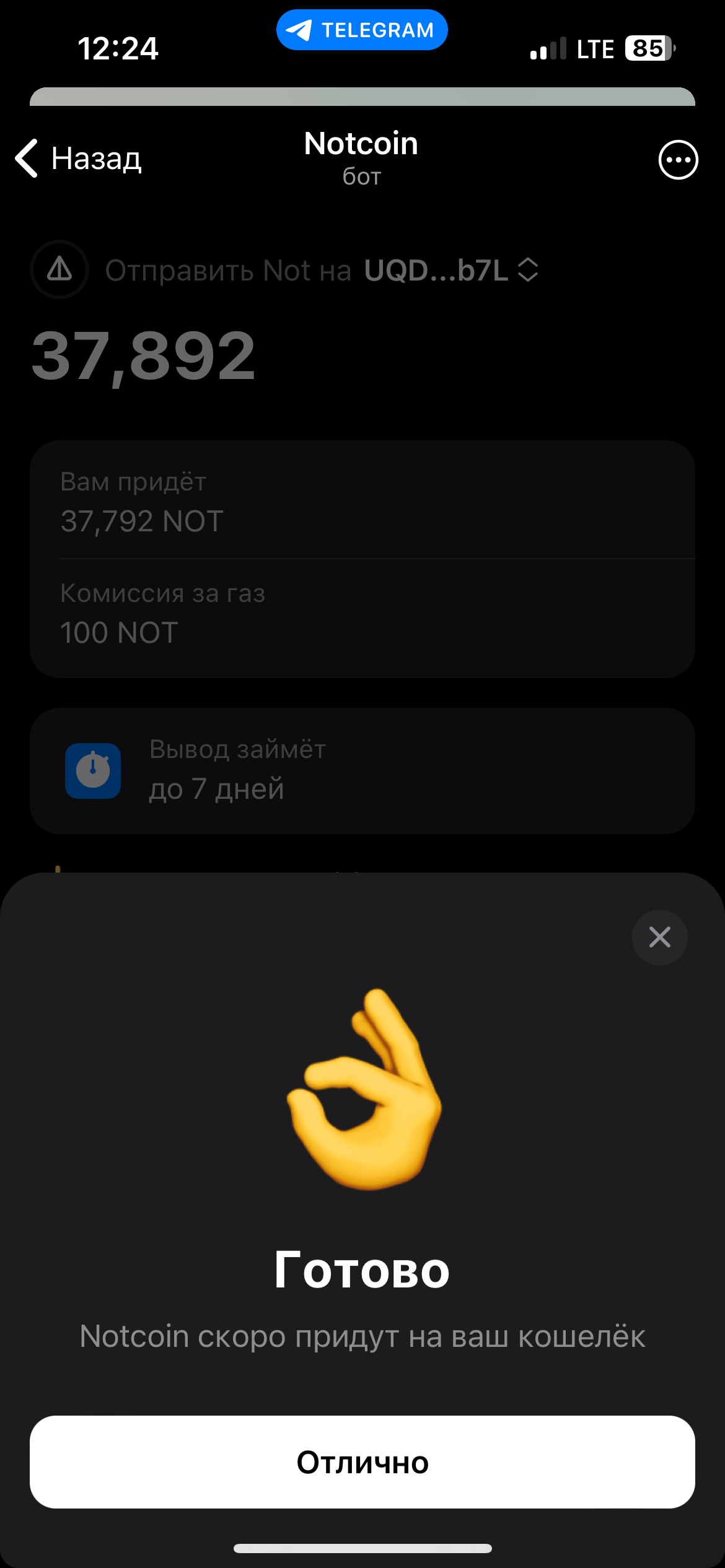 Ну чтош, вот я и вышел. Думал буду держать до последнего, но Паша поменял правила игры. Для меня киллерфичей было то, что нотом можно пользоваться внутри телеграма, но теперь это не так - только ебаные звездочки. Конечно, может быть будет еще памп, но лучше синица в руках, чем постоянное поглдывание на цену. Все спасибо, в тред я тоже, скорее всего, скоро покину