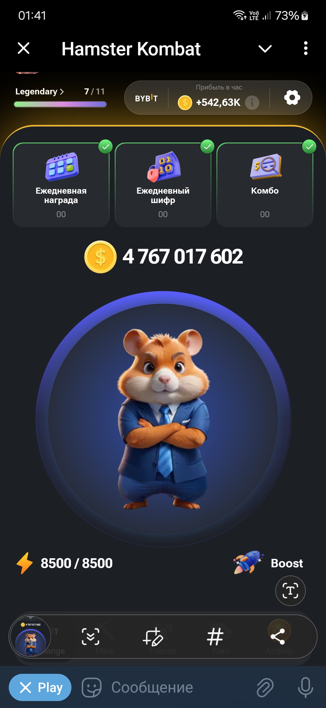 >>1096041 Захожу 3 раза в день на 10 минут. Собрать комбо, гавнокарты апнуть на все деньги, азбуку морзе подучить, теперь вот ещё ключ получить. Никакой тряски. 4 месяца уже. С перерывами когда бывает похуй на хомяка. +5,7 млн в час, грандмастер. На лорда похуй