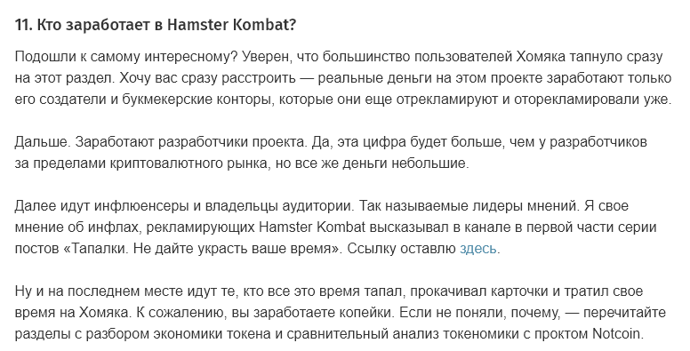 Проигрываю с копиумных, которые надеются вывести десятку другую долларов, не говоря уже больших суммах Глистинг буквально неизвестно когда, в самой тапалке уже реклама буков и Яндекса В приложении 200 с хером лямов хомячья. Вы предлагаете создателю этого скама всю прибыль с рекламы вам отдать за то, что вы кликали хомяка и покупали картиночки за внутриигровую валюту? Я сам уже несколько дней не захожу в это говно, ибо надоело очередную карточку покупать Единственными заработавшими тут будут создатель и КО этого хомяка и барыги с фанпея, продающие рефов и акки