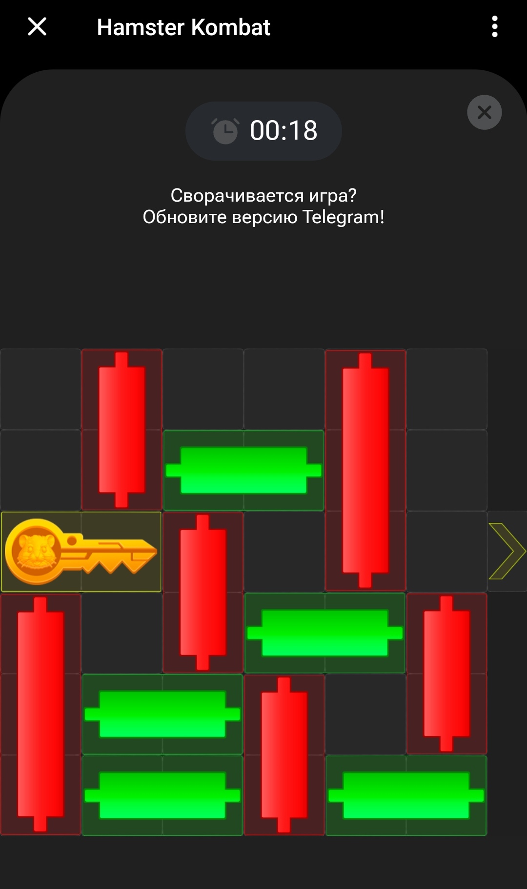 Походу реально пошел отсев фулл даунов, которые не в состоянии детский пазл решить. Прошел со 2 раза. Первый раз хуева двигались ползунки. Разрабы даже в своем тг написали, что у кого проблемы с игрой обновите тг. Я посмотрел в аппсторе и реально была новая версия. Со 2-й попытки прошел быстро, даже 11 сек на таймере осталось. Надеюсь дроп будет зависеть и от кол-ва ключей, чтоб прям совсем долбаебов отсеять.