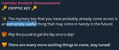 Так! Раскрываю подробности, полученные от инсайдера. В обще за каждые 10 ключей можно будет купить доступ к командной игре в будущем, что - то вроде командной королевской битвы кликра из 10 команд по 5 хомяков в которой нужно будет получить медали за 1, 2 или 3-е места, соответственно золото, серебро или медь. Эти медали нужны будут для доступа к супер игре битвы за эйрдроп, что-то вроде танчиков игра будет на денди, в соревновании из 100 хомяков, золото нужно будет 3 медали, серебра 9 или меди 18, там считается типа 1 золото == 3 серебра и так далее, после победы в супер игре хотя бы одной появится доступ к лотерее на эйрдроп и тут уже удача будет решать сколько вам достанется либо Джек по либо мелочи насыпят., но в лотерее можно максимум участвовать три раза.