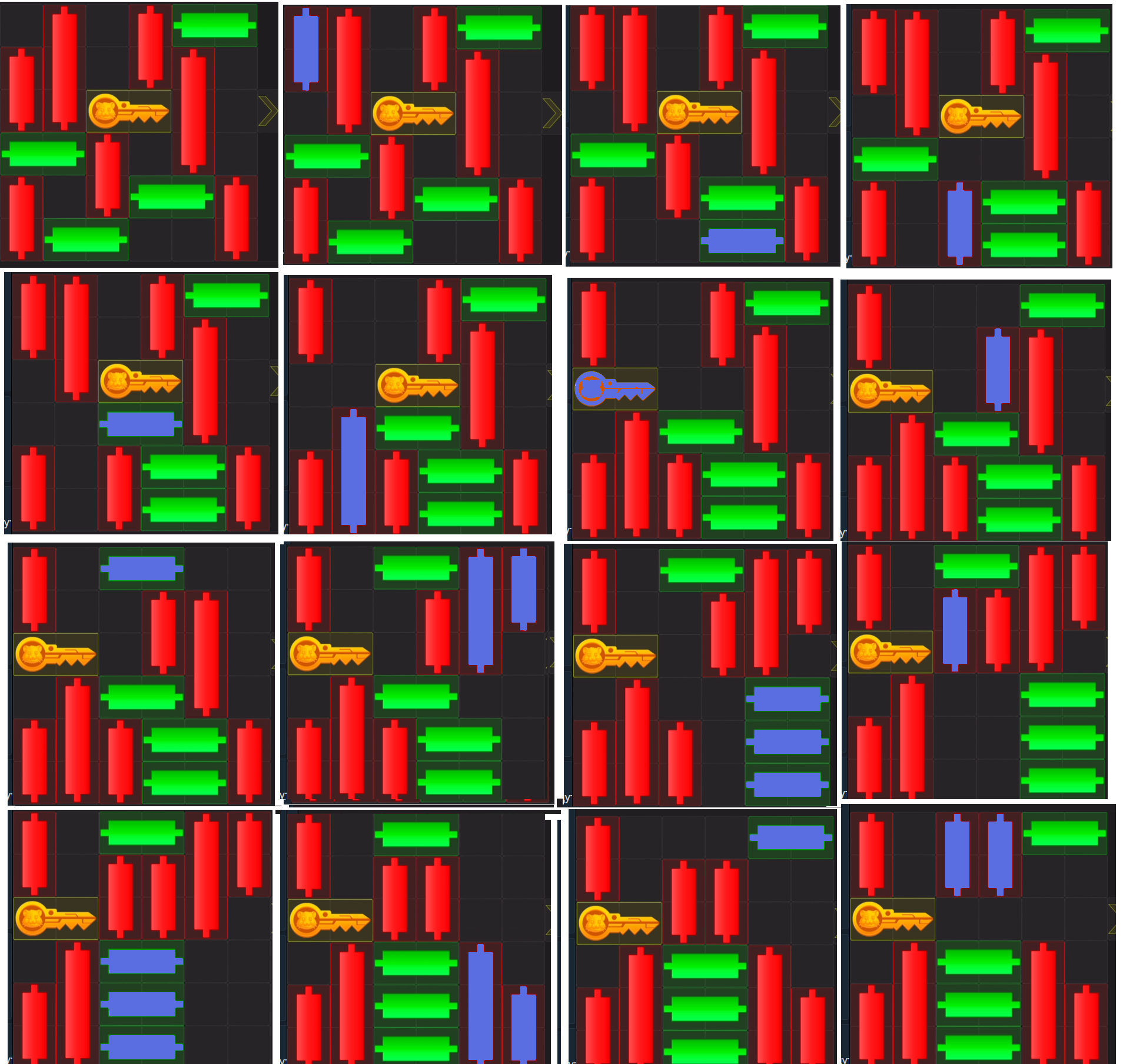 >>1095226 > Time is up > Time is up Хм ты хакир? >>1095223 Шаги 1-6 Собираешь справа J из зеленых Шаги 7-8 Красные в центре !! вниз, ключ в центр Шаг 9 убираешь красную вниз влево к остальным, зеленую вверх влево Шаг 10 ключ обратно влево, шаг 11 красные !! вверх до упора, шаг 12 ключ снова в центр Шаг 13 красное левое говно снизу вверх на 1 Шаг 14 зеленое нижнее говно справа влево до упора Шаг 15 красное правое говно сверху вниз открывая выход