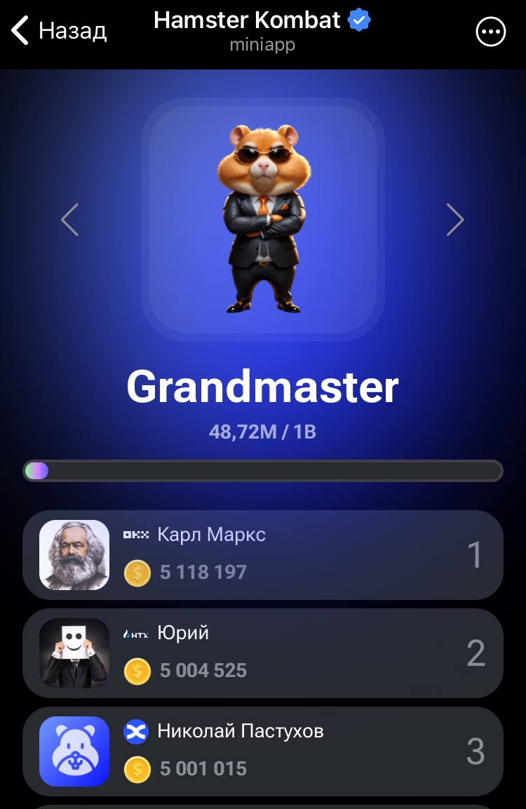 Так хомячары! Раздадут монетки за уровень в лиге, и за прибыль в час. А ПОТОМ все сбросится до 0. И будет игра заново. Тем самым все продолжится и монеты будут в цене на рынке из за дефецита. Инфа сотка. Трахаю одного из разработчиков хомяка и поставлю им кокаин.