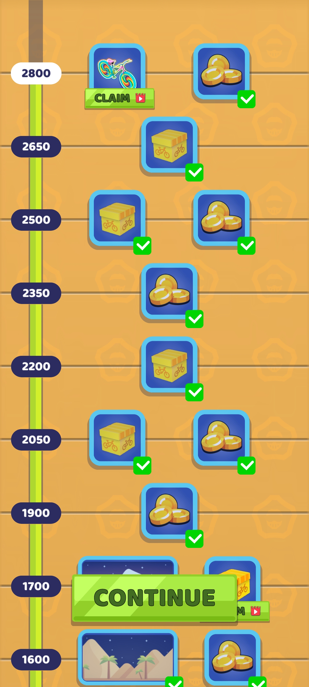 Важно. 1. Поскольку рекламы нет при сборе велосипеда, не обязательно покупать дорогие из коробок. Можно купить 20 штук 3 уровня например, быстро прокликав собрать тот же велик гораздо дешевле. 2. Не надо сразу собирать велосипед 20 уровня. Покатались пару раз на, условно, 3м уровне, апнули его до 4 уровня и опять покатались. 3. Гонки с боссами в зачёт не идут. Если важно время, то босса можно скипнуть