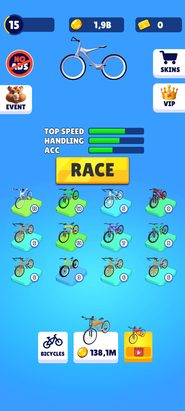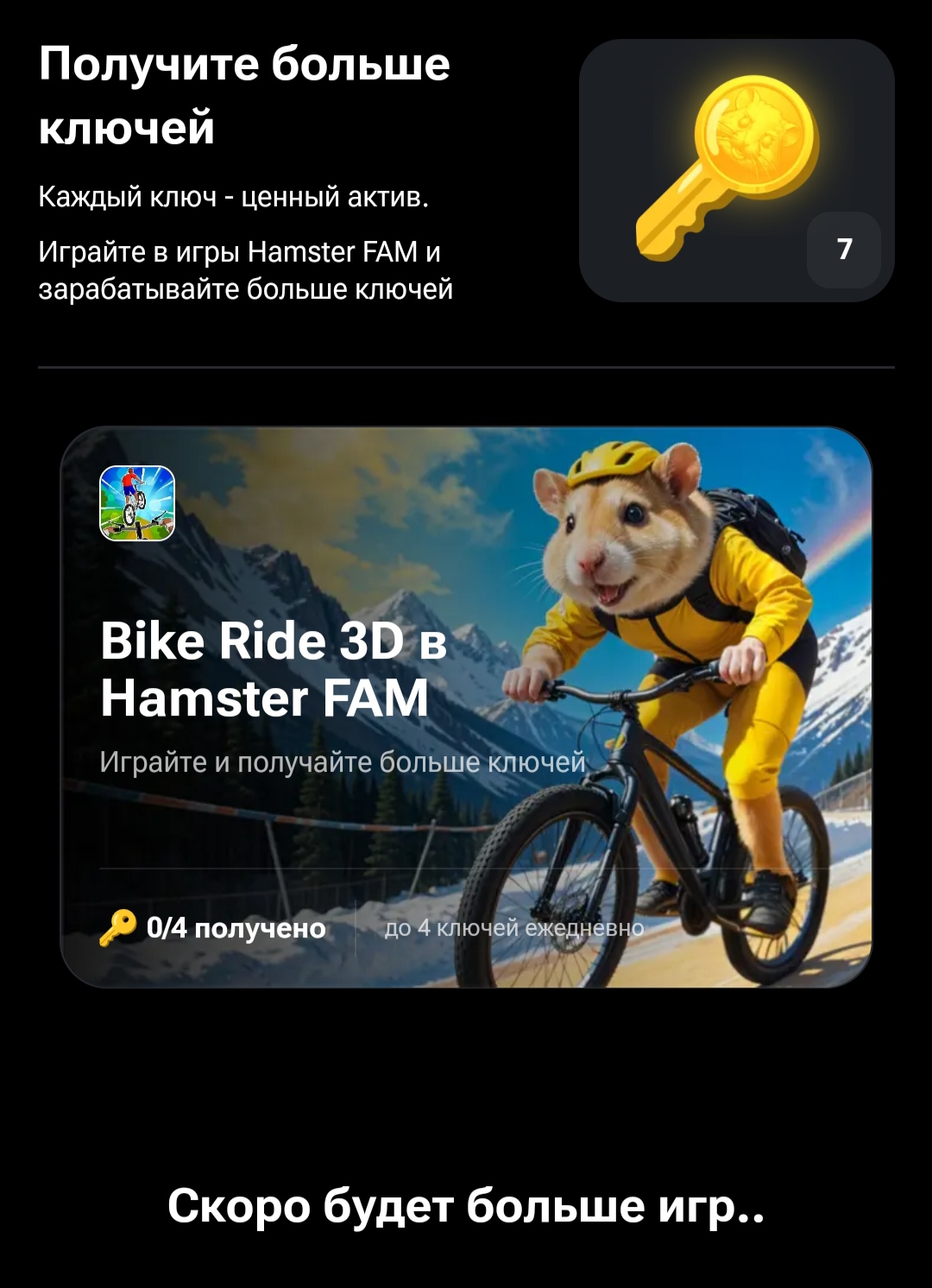 BIKE-23G-S3ZK-0RAT-BGX короче вот вам мой первый код, это реально калище какое-то, гонял гонял и ничего, в итоге рекламу посмотрел и ключ дали лучше бы они автоиграйку мобильную добавили нормальную а не это нах