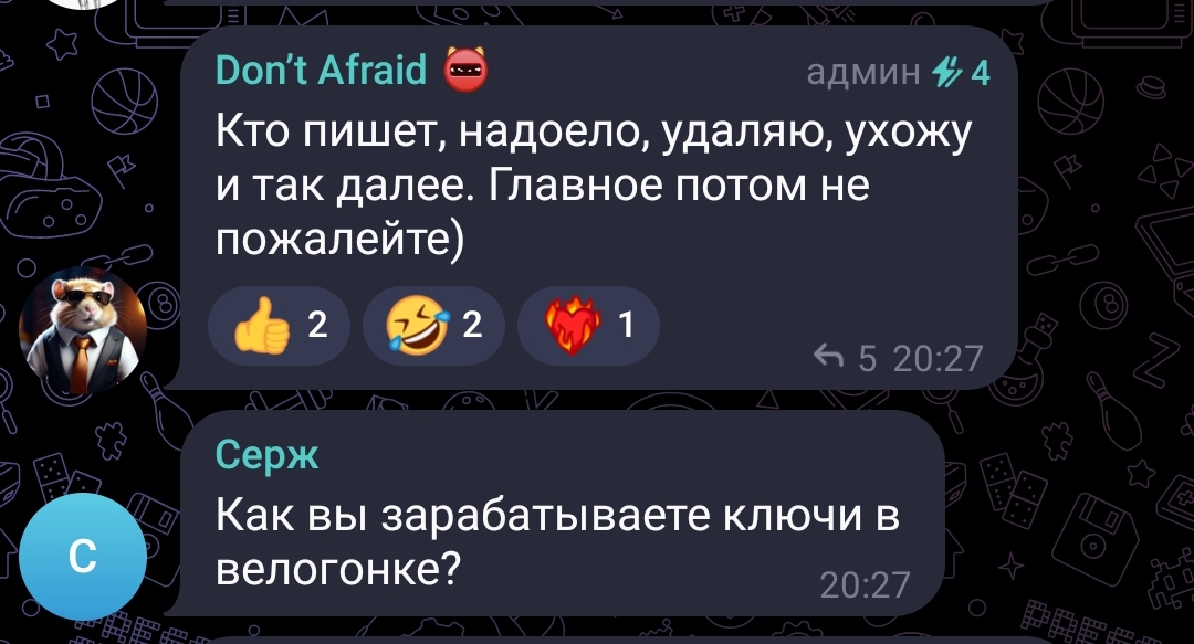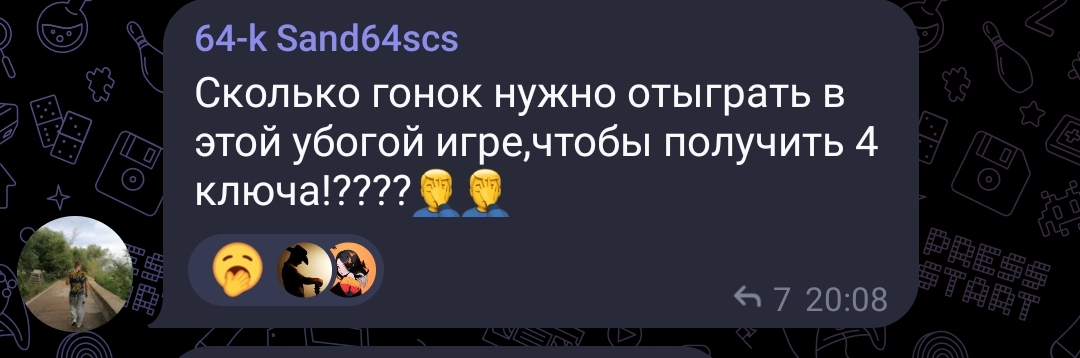 вы понимаете что я не только 4 ключа в кручении педалей должен получить, но и по 4 ключа для 10ти своих фейков которых пригласил, как же я устал играть, а что будет когда введут еше одну игру, ПОЖАЛЕЙТЕ МЕНЯ!!