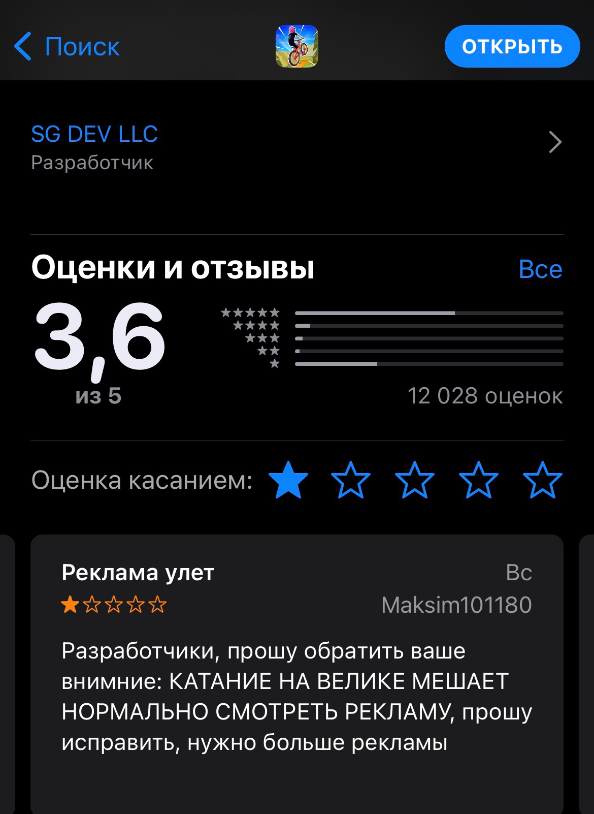 Тем временем рейтинг велосипедной параши в сторе вырос до 4.0. А это значит, что пидорас тратит деньги на накрутку своей игры. Что есть хорошо, потому что у него по факту меньше будет заработанных денег.