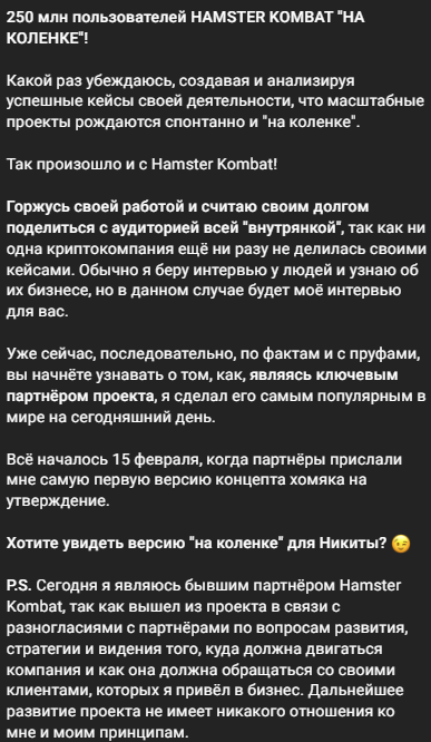 Эдик кивнул партнёров, киданул инфлюенсеров. Но хомяков не киданёт, конечно же. Он внезапно станет честным человеком и сделает эйрдроп, а также листинг, хомяки заработают по ламбе каждому. Всё так и будет