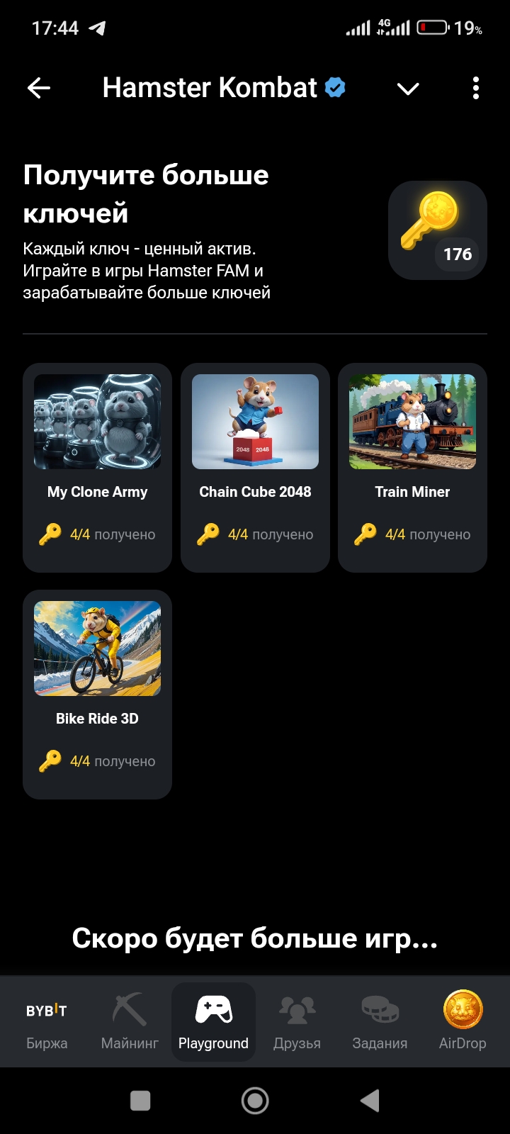 🔑 Несколько недель назад мы запустили раздел «Игровая площадка» — прототип будущей экосистемы развлечений Hamster . Недавно несколько игр были интегрированы с Hamster Kombat через механизм ключей.