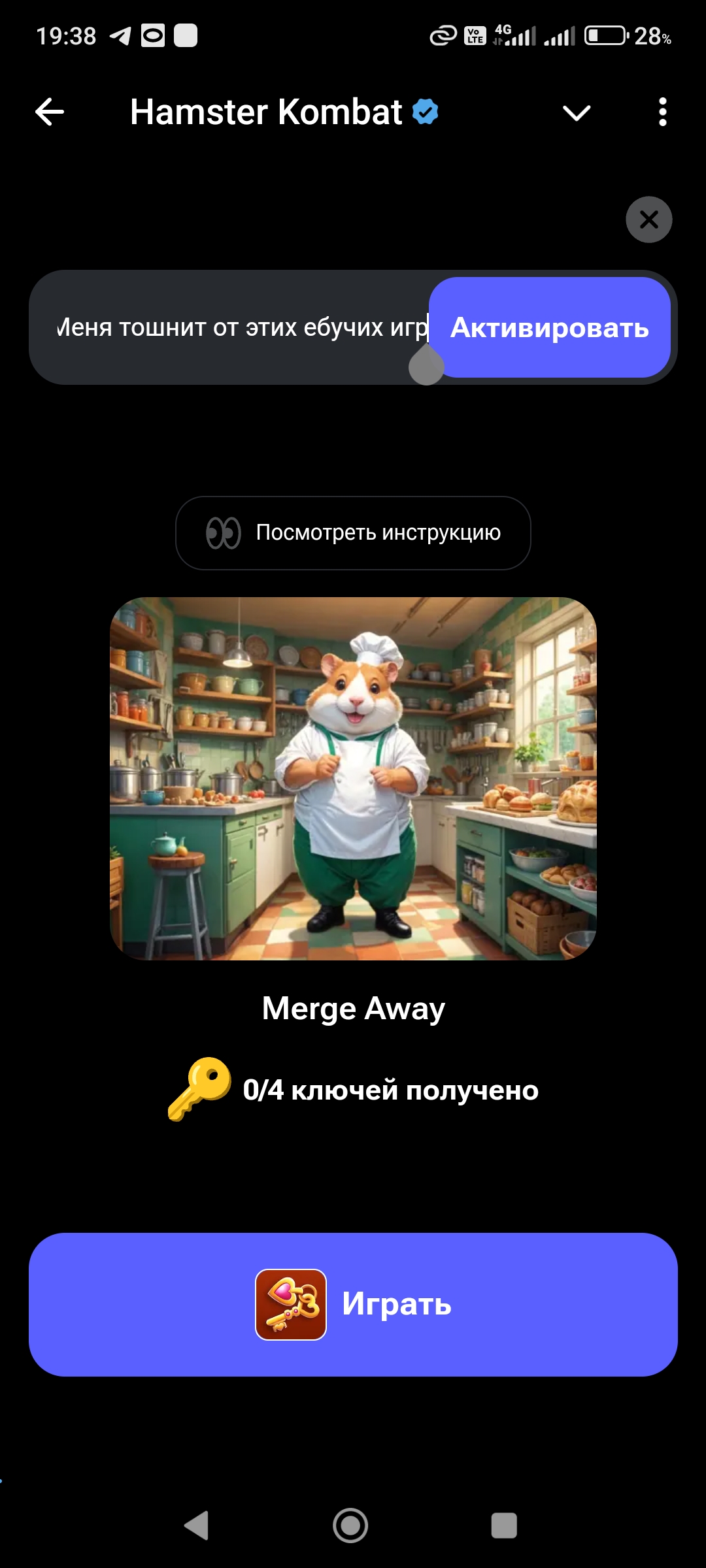 Ключики ключики мы все любим ключики, генерируем ключики Каждый день я генератор запускаю, В Hamster Kombat ключи добываю. С новым кодом в бой иду, Силы хомяка вновь найду.