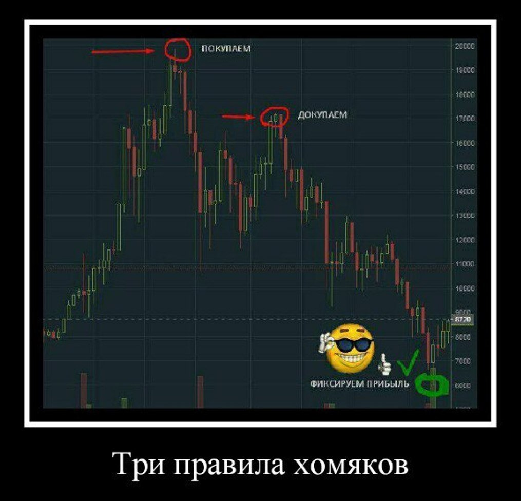 План балдежный, но есть ньюанс. В один момент красная палочка будет настолько большой, что идущие за ней зелёные всё равно покажут минус по балансу. И ждать, когда всё вернётся придётся долго, а зачастую никогда (если купил мемных монет-однодневок). Ну и в историям в интернете про успех не стоит верить, всё это крючки чтобы втянуть тебя в одну из заманух. Заработать в крипте можно, но для этого нужен план всё же посложнее.