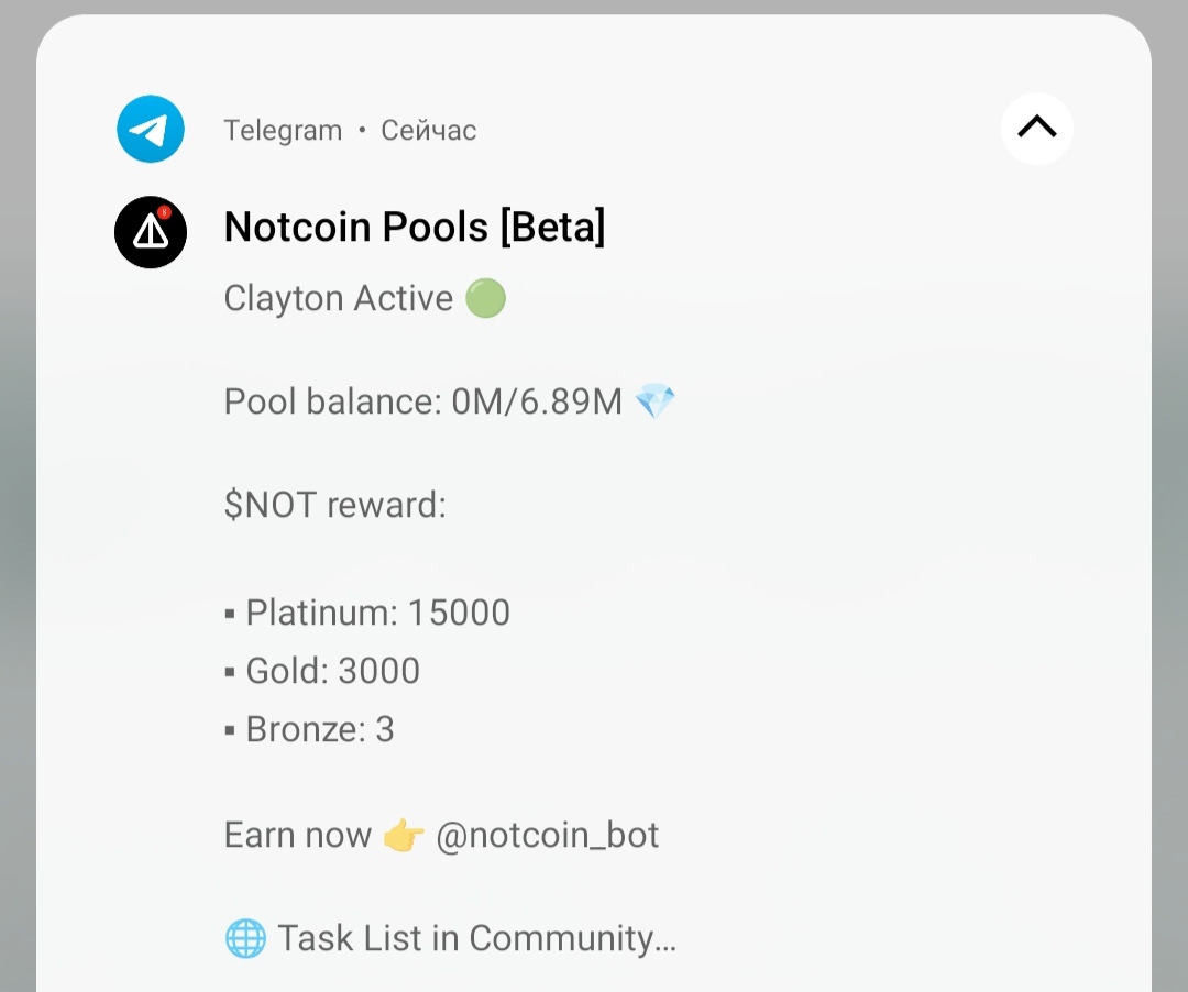 На момент создания: - Пашка отпущен под залог; - Монетка падает; - Исправлена проблема с выводом; - Появилась возможность upgrade статуса; - Бот вышел из beta; - Монетка стабилизировалась $0,015; - Незнайка-кун не знает; - Ничего серьезного не происходит, Саша молчит, монетка падает; - Обещают NFT за telegram stars; - Произошло значительное снижение на 18,3%, упав с $0,02071 до $0,0175 с момента окончания недавнего периода подачи заявок на раздачу в воскресенье. Закупщики рвут волосы на жопе; - Ожидаем 16.01.2024 вывода бота из beta; - Кто стейкает, обещают бесплатный уровень; - C 11.06.2024 у notcoin нет владельца; - Сяоми-кун купил телефон; - Пиво-кун попил пива; - Шаурма-кун поел шаурмы; - Notcoin сделал 4 икса; - Паша ждет цену $0.69 за 1 notcoin.