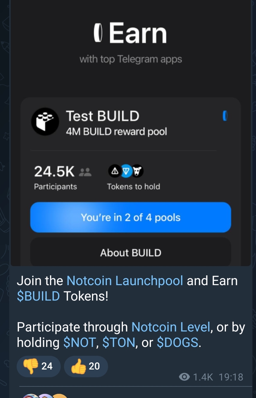 Завтра будет новый пул в Earn на фарм WOOF. Теперь дополнительно будет учитываться время холда монет, чем дольше держишь и не выходишь из пула тем больше фарм. С такой системой люди меньше будут перескакивать с пула на пул. В build опять будет самый большой процент