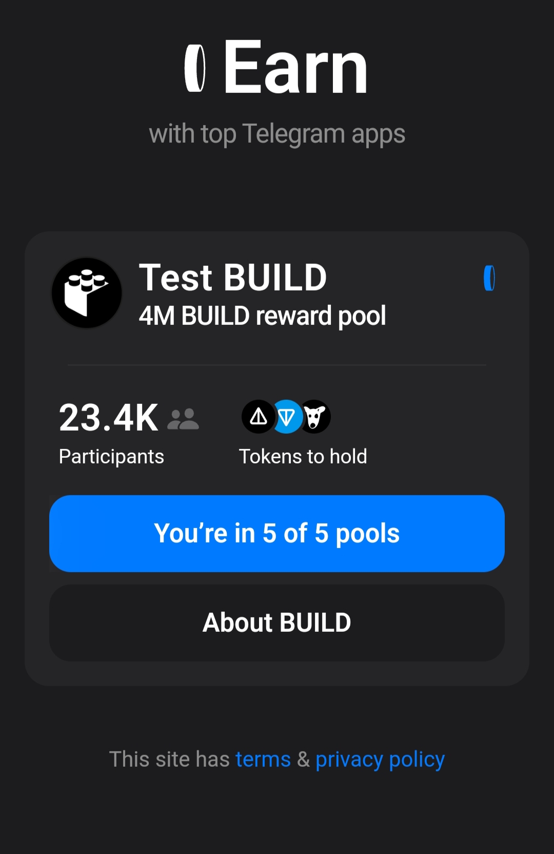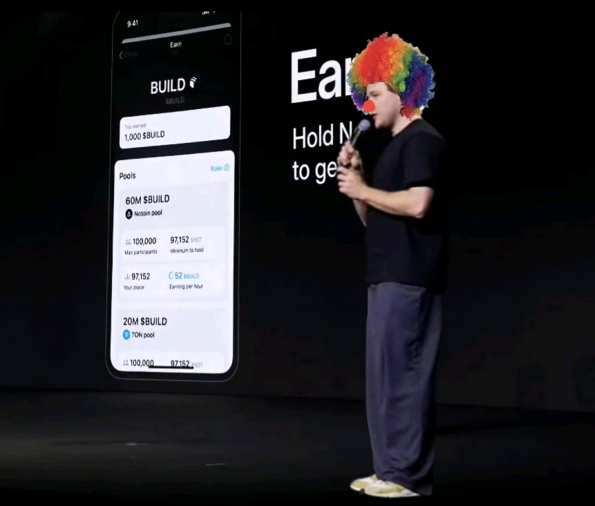 >>1192160 Build это bnb от мира телеграма. Растет потому что надо и сейчас открыт пул с фармом PX токенов в Earn app. Просто держишь либо ton либо not либо build либо другие сашины щитки у себя на кошельке и за это получаешь токены PX. Ничего никуда закидывать и лишних действий делать не нужно. По моему это ахуенно