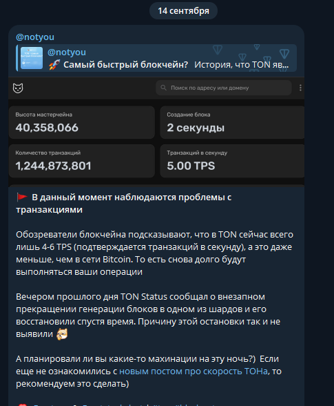 >>1124498 Телеге пиздец придёт, переводы всё сломают. Это тупо факт, еще и дудос подкинуть и пиздец будет. И чудесным образом пару лярдов сольются на бирже, пока скамяки будут разрывать чаты