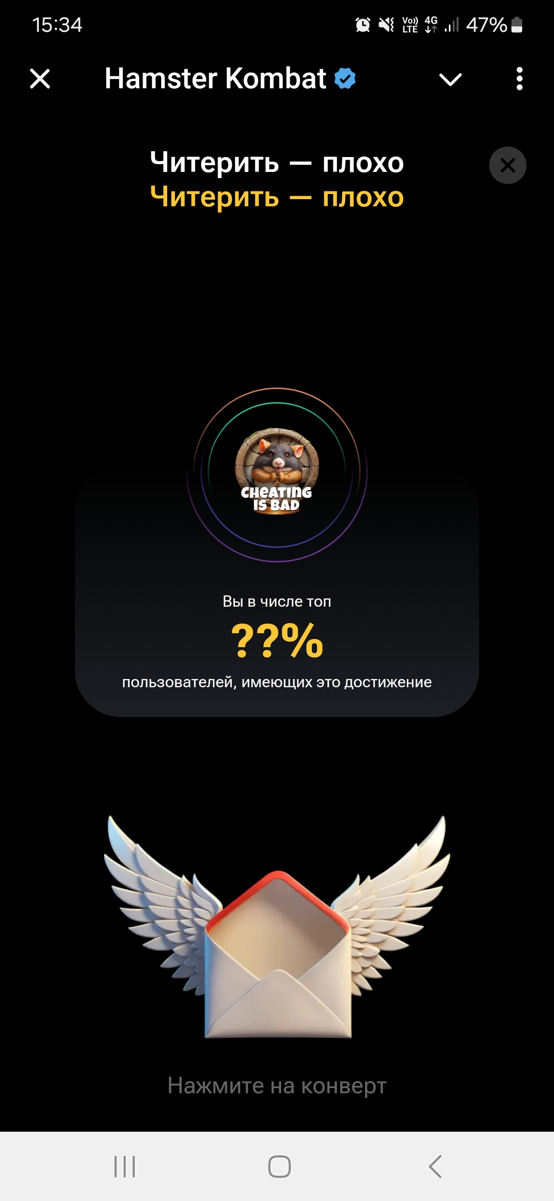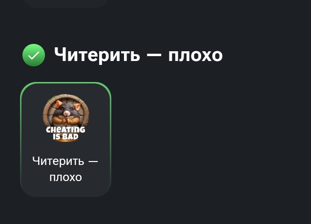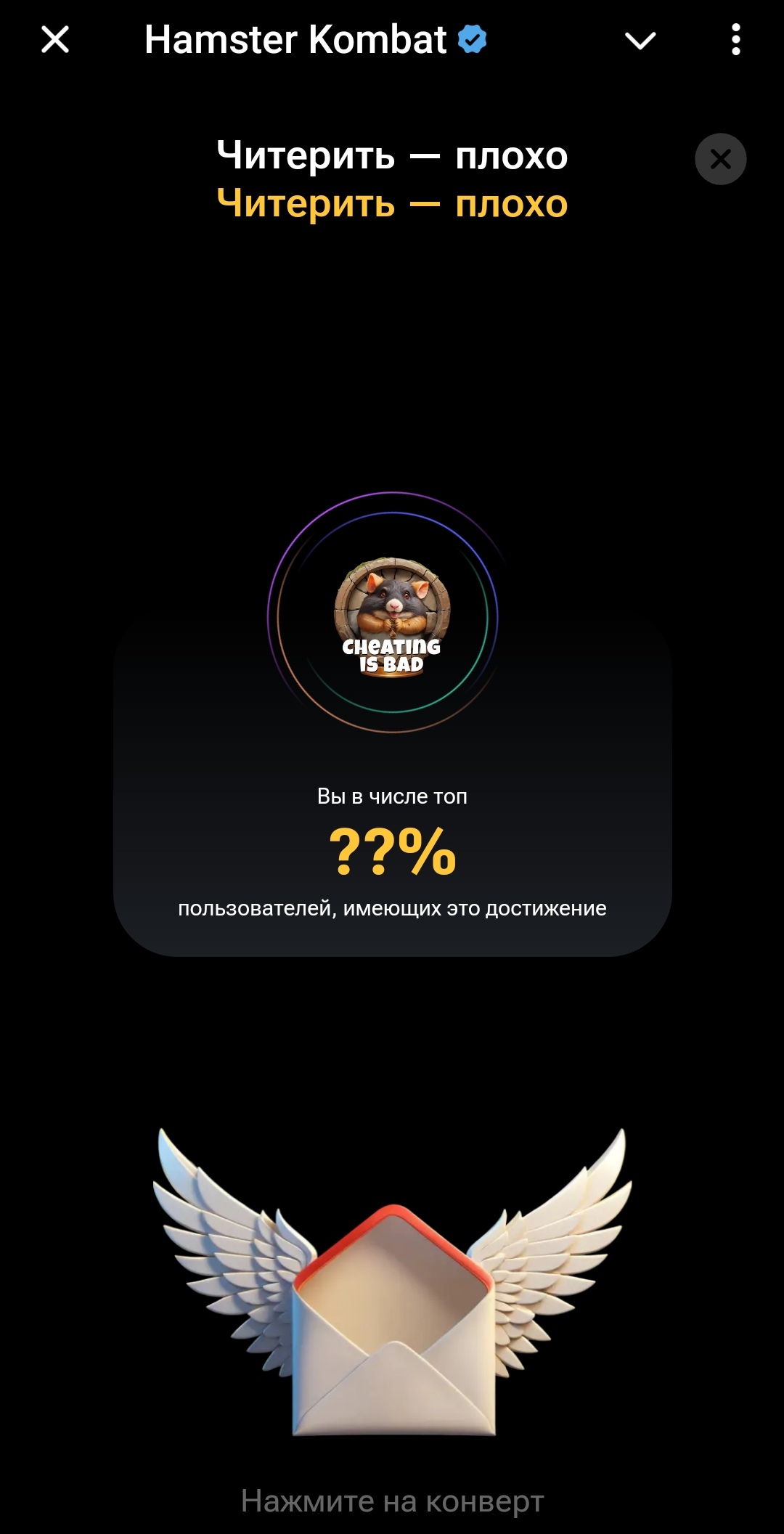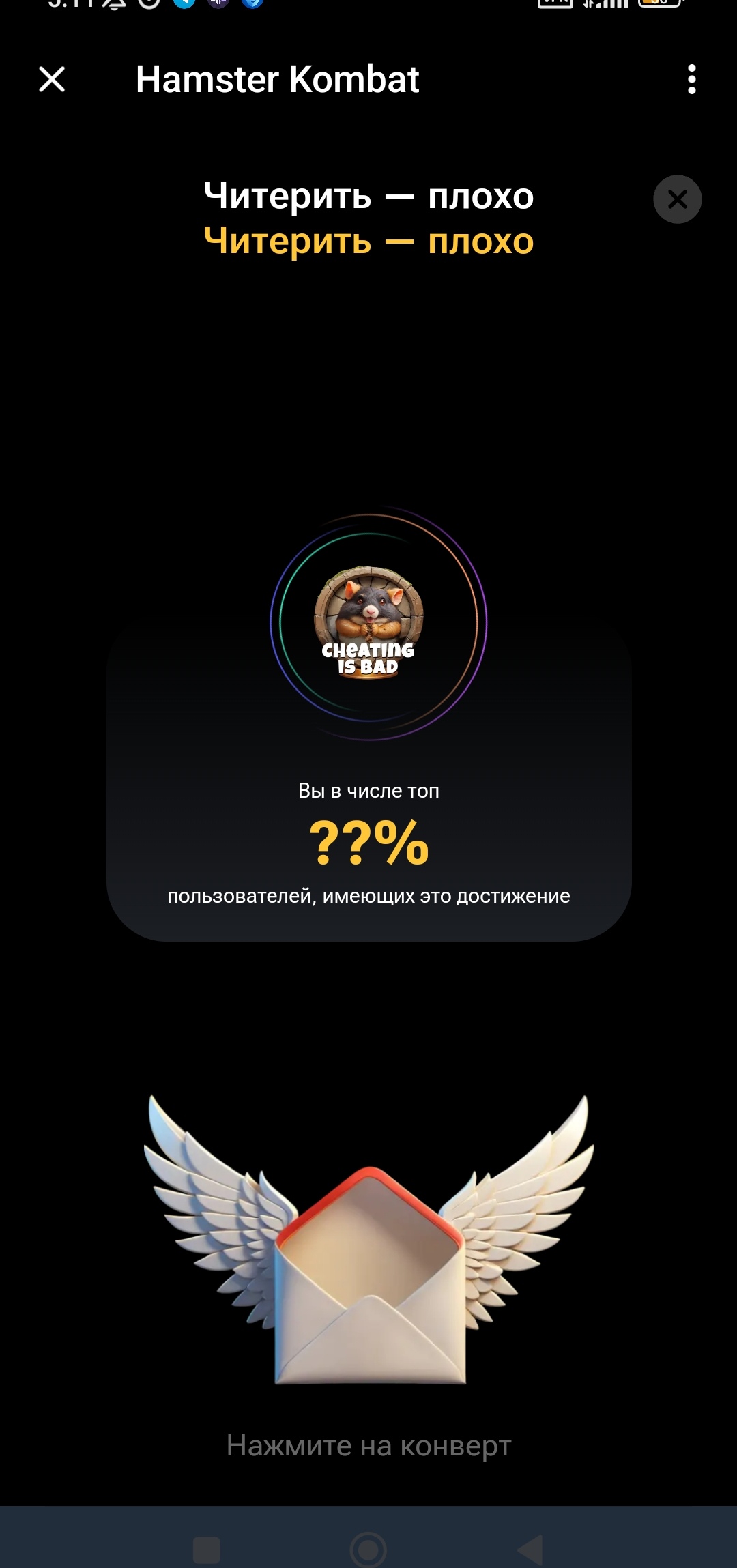 🤓 Мы ввели стратегию против читерства в Hamster Kombat, и некоторые из вас могут получить сегодня достижение «Читерство - это плохо»...