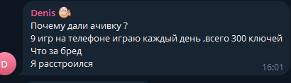 1050 ключей после 1000 с чем то перестал генерировать, просто заебало даже генерировать, только на монеты 8 ключей генерирую и ввожу их раз в 20 минут примерно теперь после первой волны ачивки, до этого прямо все сплошняком вводил. 15 рефов, все на виртуальные номера прямо с моего телефона без проксей/впн. Нет ачивки до сих пор. Все сосать! Даже не представляю ебало тех, кто честно играет в этот кал и еще и ачивку за это получил, я бы сгорел нахуй.