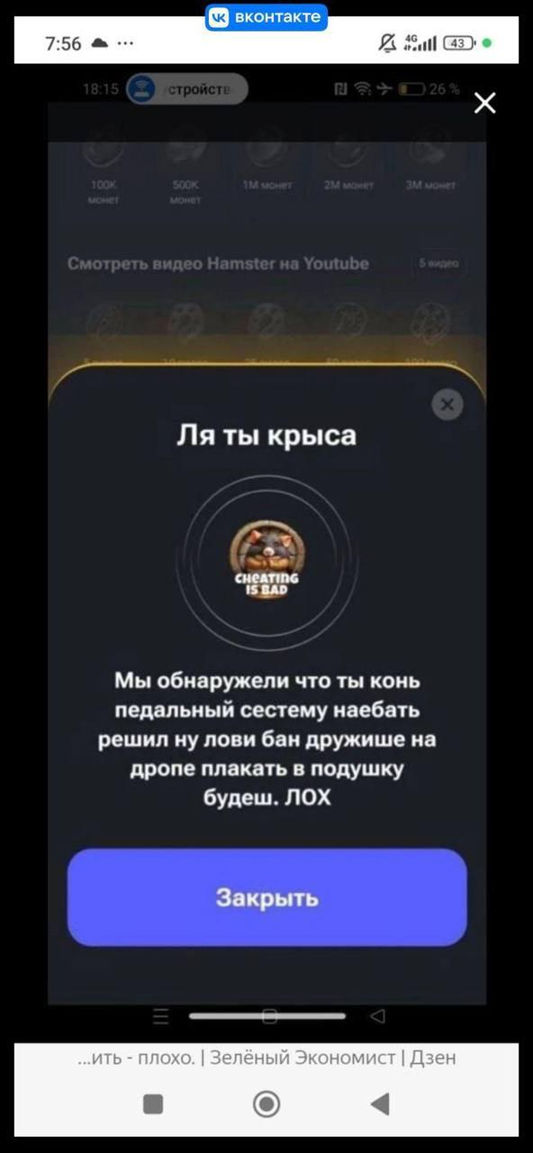 Напоминаем! Администрация проекта не одобряет: 🚫использование автокликера 🚫использование мультиаккаунтов 🚫использование промокода, который не был выдан из мини-игр 🚫другие незаконные способы улучшения прогресса в боте Hamster Kombat. Мы не блокируем аккаунты пользователей за незаконную игру, но определенные санкции будут применены✍️ Когда и какие именно, вы узнаете в дальнейшем. Не попадайтесь на уловки мошенников 🥷 Играйте, развивайтесь честно❤️