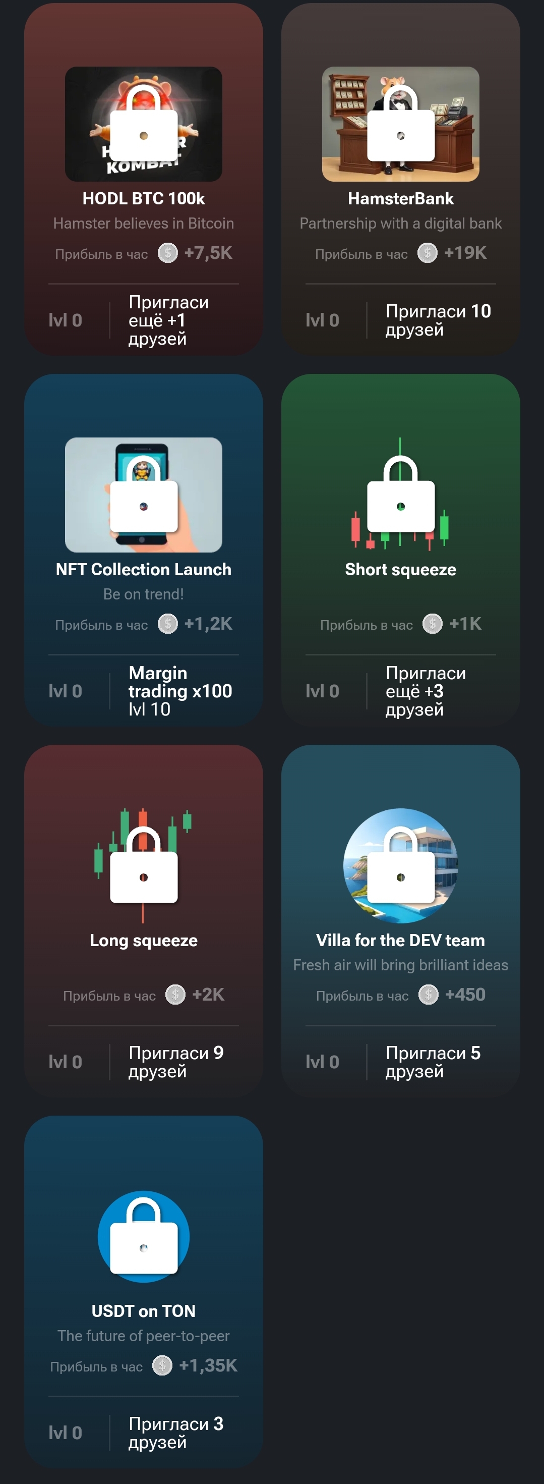 Не забывайте, что это только первый сезон и нас еще ждет очень долгий путь полный приключений, множество новых игр, новые возможности и увлекательные задания, скоро появятся кланы, клановые битвы. строительство замков и городов, битвы на драконах, битвы драконов осады клановых замков с королевскими битвами хомяков, клановые рейтинги и рыцарские бои хомяков наездников на драконах и дуэли с различным оружием которое можно будет крафтить из ресурсов, конечно майниг ресурсов, необходимых для строительства городов и клановых замков, торговля ресурсами и пиратские осады бастионов для захвата ресурсов у чужих игроков и даже кланов, новые уникальные скины, создание собственных NFT скинов с амулетами и украшениями, рынок на котром можно будет покупать и продавать амулеты и украшения и много многое другое даже оружие и броню для своих драконов, амулету будут заряжаться энергией и увеличивать фарм монет! Будет космическая хомячья программа где мы будем запускать ракеты в космос! Готовьтесь, будет много много всего интересного!