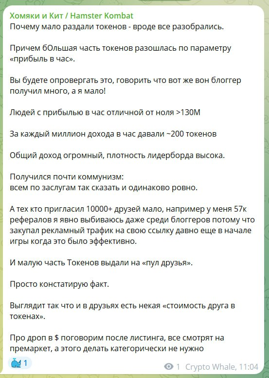 В своем официальном посте команда хомяка говорит о самой масштабной и справедливой раздаче дропа среди 131млн пользователей, но на основании сухих расчетов давайте с вами поговорим какую аферу они провернули: