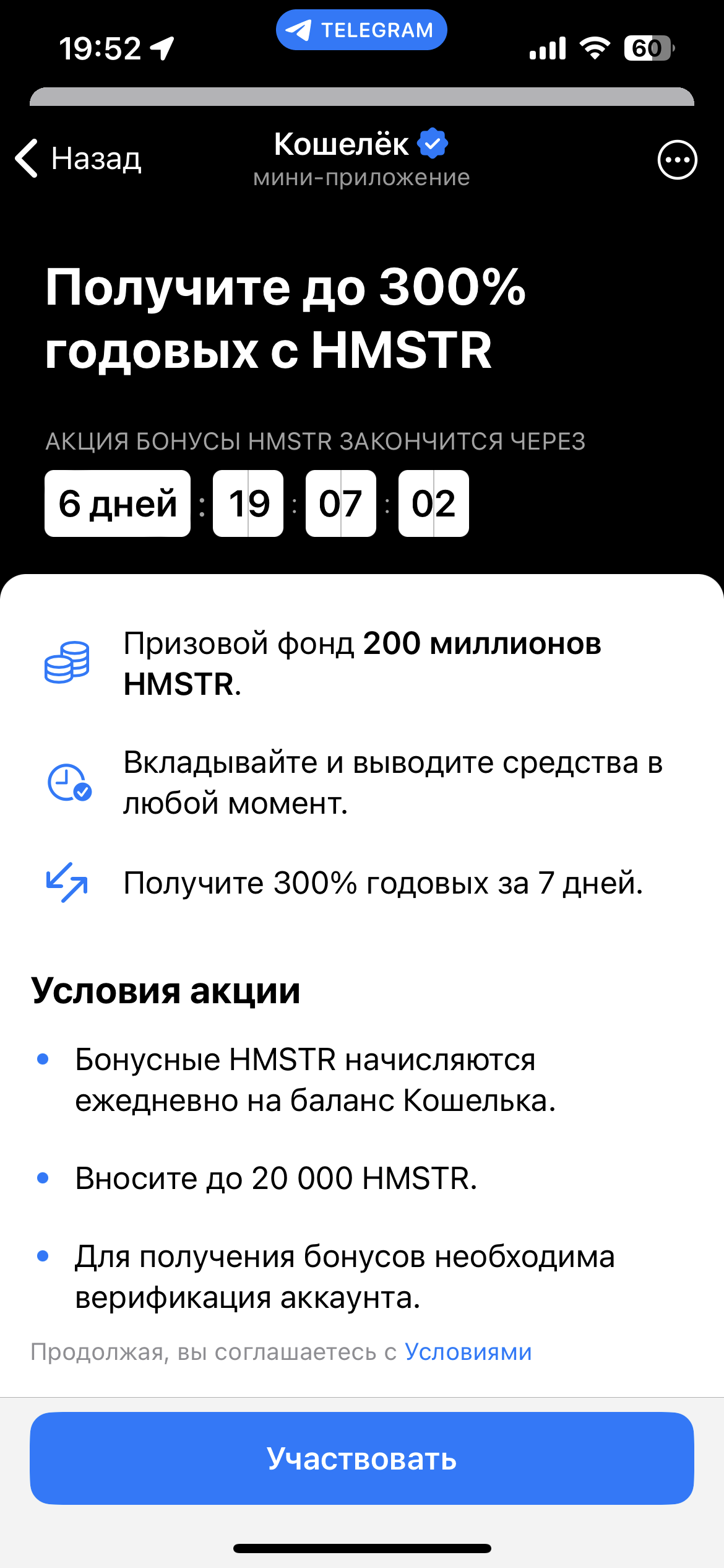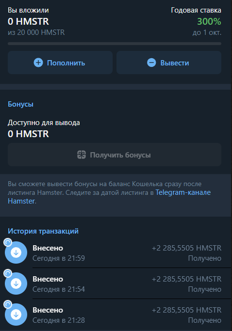 Хомяки не ссыте, крутой кит криптовейл сказал, что его друзья киты их телеграм канала сказали, что будут каждый день пампить хомяка по 10к биков в день. Скамяк будет стоить минимум 1000 долларов.