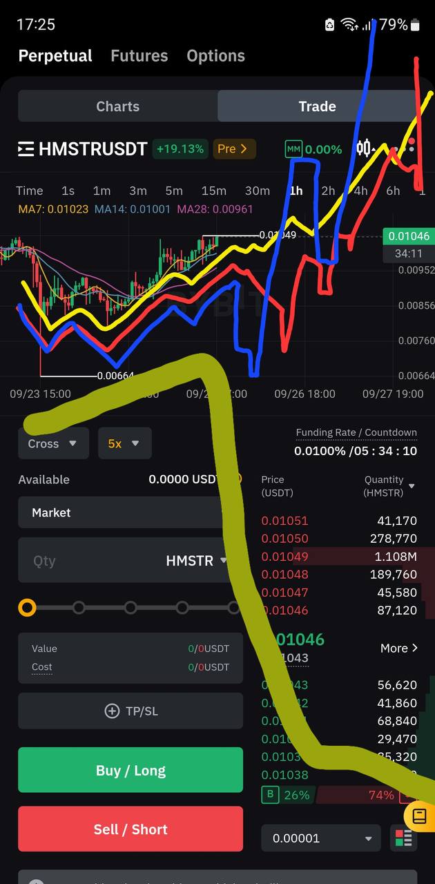 Что мы имеем тут по сути нарисовал три единственных возможных путей для хомяка к завтрашнему листинга. Самый опасный и зловредный это синий так называя свеча метод трех понимающих. Аноны будут пугаться и сливать потом желеть потом снова сливать короче на лоха так сказать но во всех трех случаях свечи говорят о том что будет рост причём иксовый и поэтому надо ходить я думаю минимум до начала ноября но лично я буду сливать 30 сентября это как по красной линии будет самый