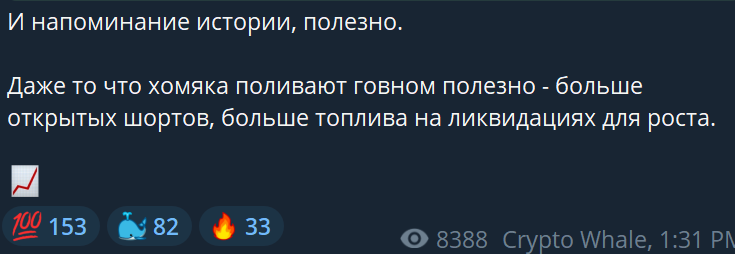 Даже то что хомяка поливают говном полезно - больше открытых шортов, больше топлива на ликвидациях для роста.