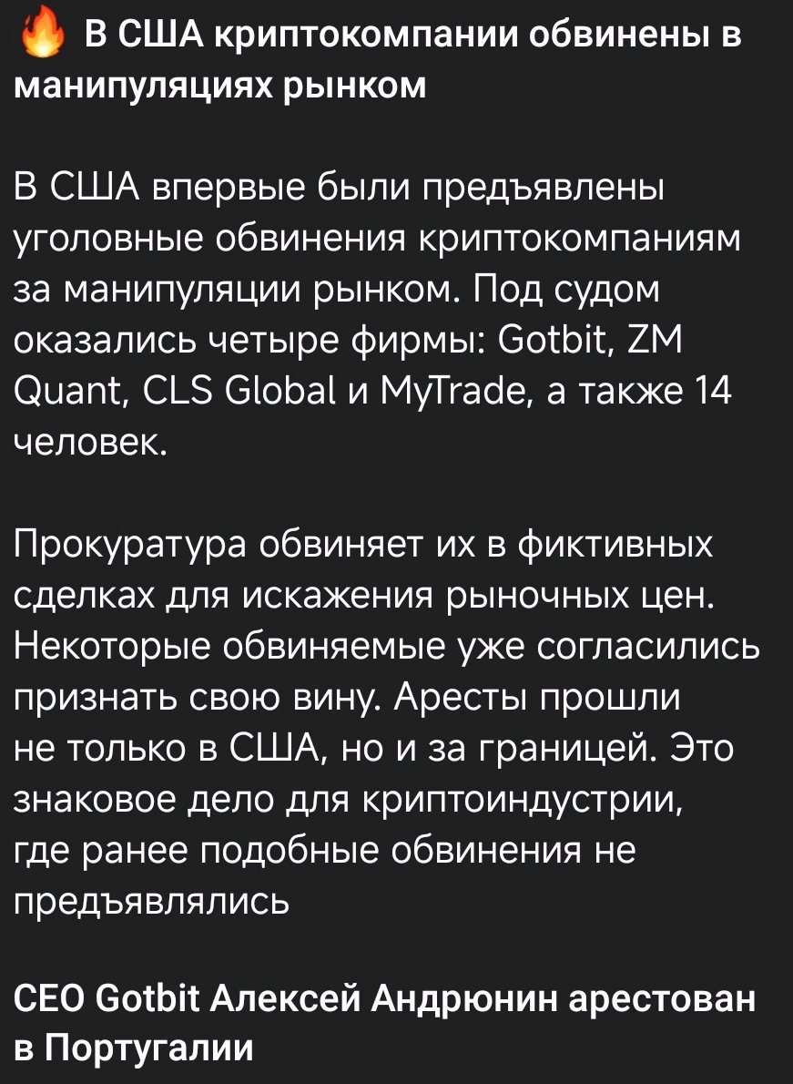 На всякий случай GotBit на бутылке Памп любой тоновской хуйни - самоубийство, так как sec будет расследовать любые манипуляции, так как одно из обвинений готбиту буквально манипуляция рынком. Забудьте нахуй уже. Памп будет если только уринович решит до конца своих дней в Сибири под новым именем прожить.