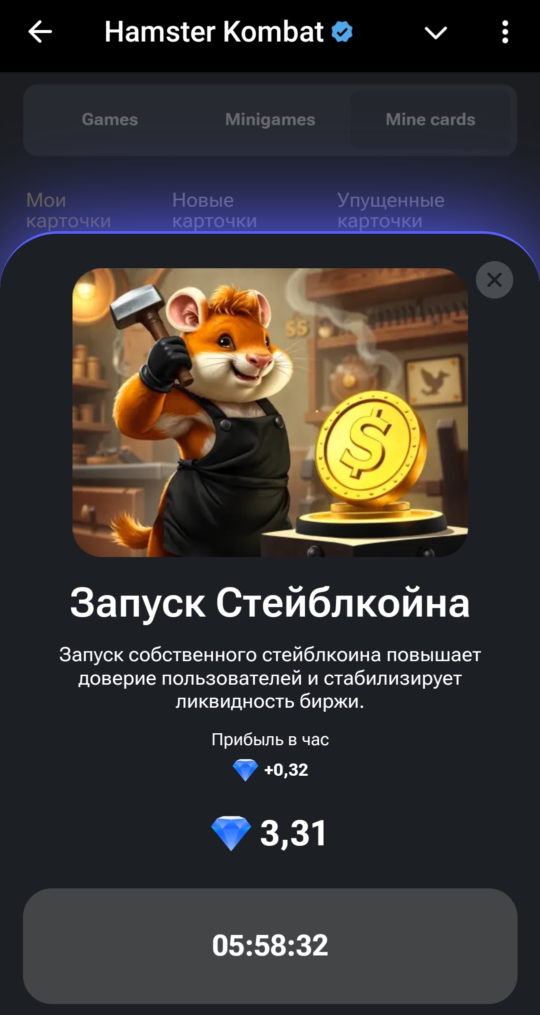 В игре Хамстер я волею случая оказался с первых ее дней и начал сначала тапать, потом качать карты, потом понял что игра стала для меня интерактивным учебником по тому что такое крипта.