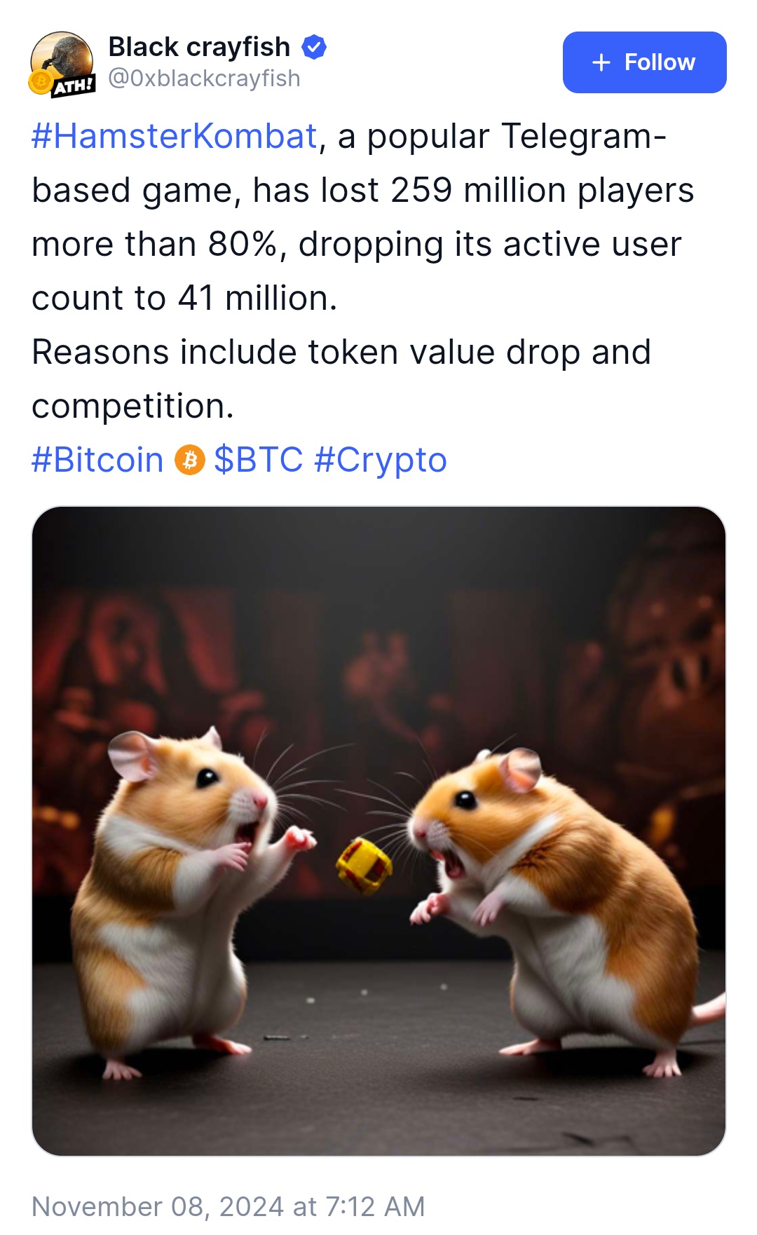 Инсайдерская информация от самого уриновича Хомяк это тапапалка с 200 миллионами пользователей,