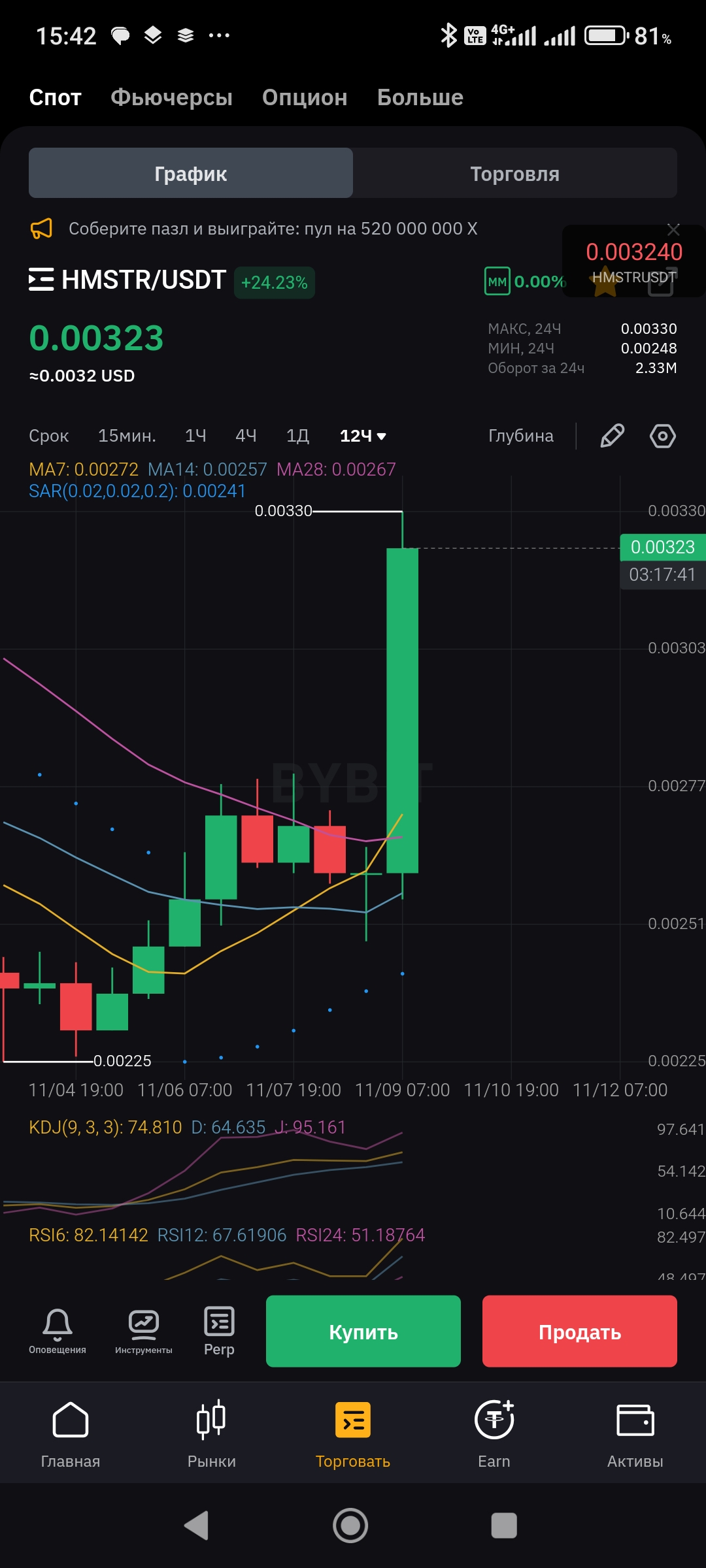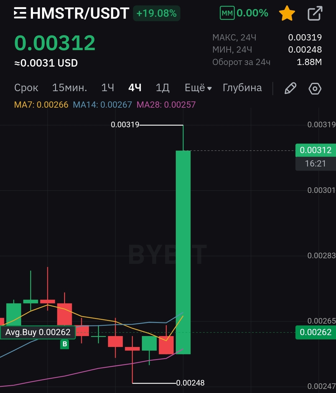 Пацаны, скоро памп будет жосткий, мне бабка с пенсии 5 косарей отслюнявила и я решил закупиться на всю котлету, готовьтесь, завтра с утра ещё немного просядет по моей инсайдерской информации и начну скупать монеты.