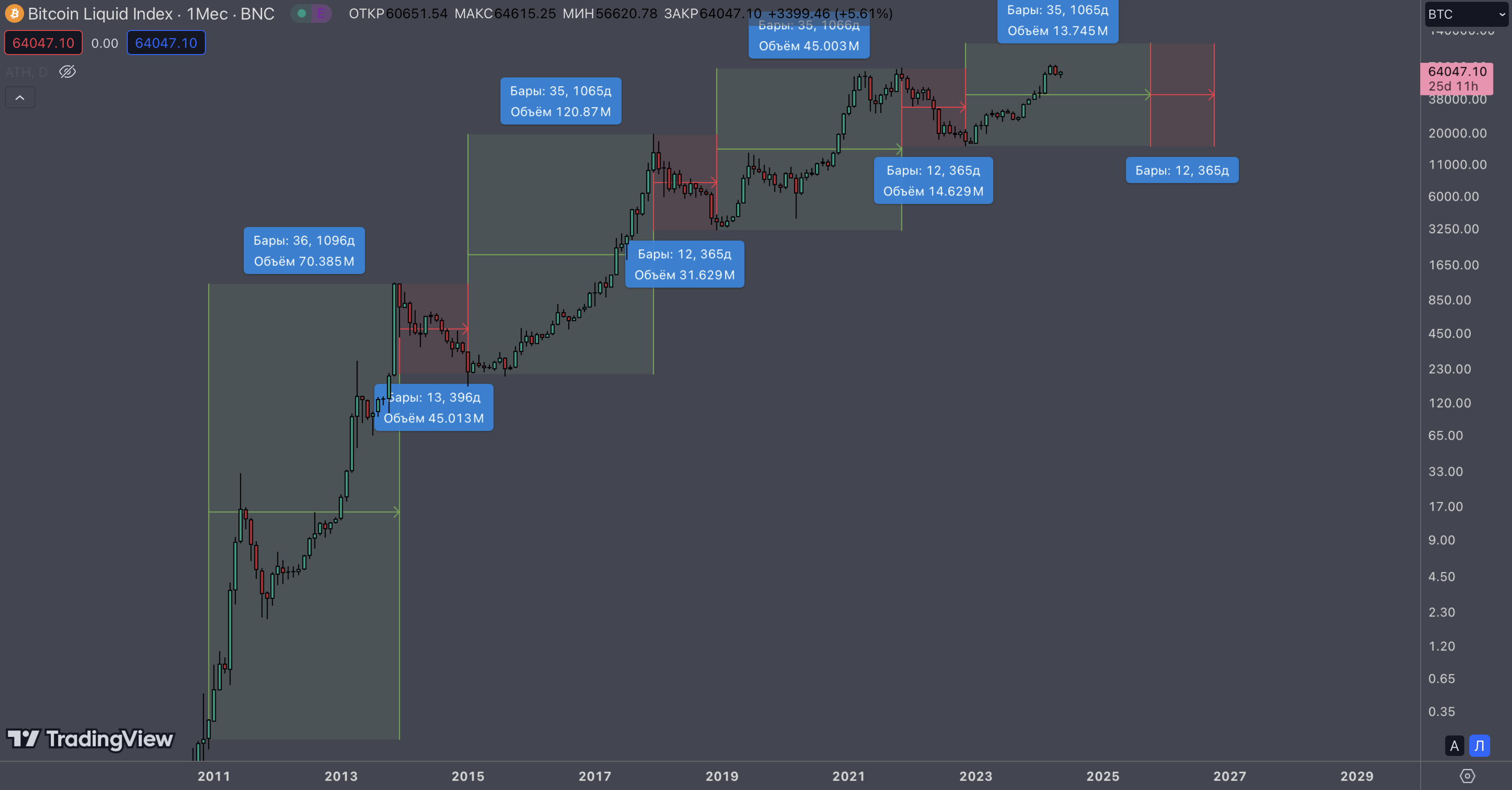 >>1164881 По циклам битка пикрил. Ориентируюсь по датам, а не по ценам. Например, по циклам весной 2025 надо скидывать часть альты по любой цене, а полностью обкэшиваться осенью 2025, так как там начинается разворот в медвежку длиной в год, +- в ноябре 2026 надо закупаться дедом, так как там будет дно нового цикла.