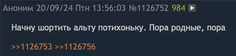 Скорее всего, выделю крошки на деда и несколько альтов, на них шортану, а основную котлету ЮСДТ буду держать вне биржи год, в ожидании ноября 2026.