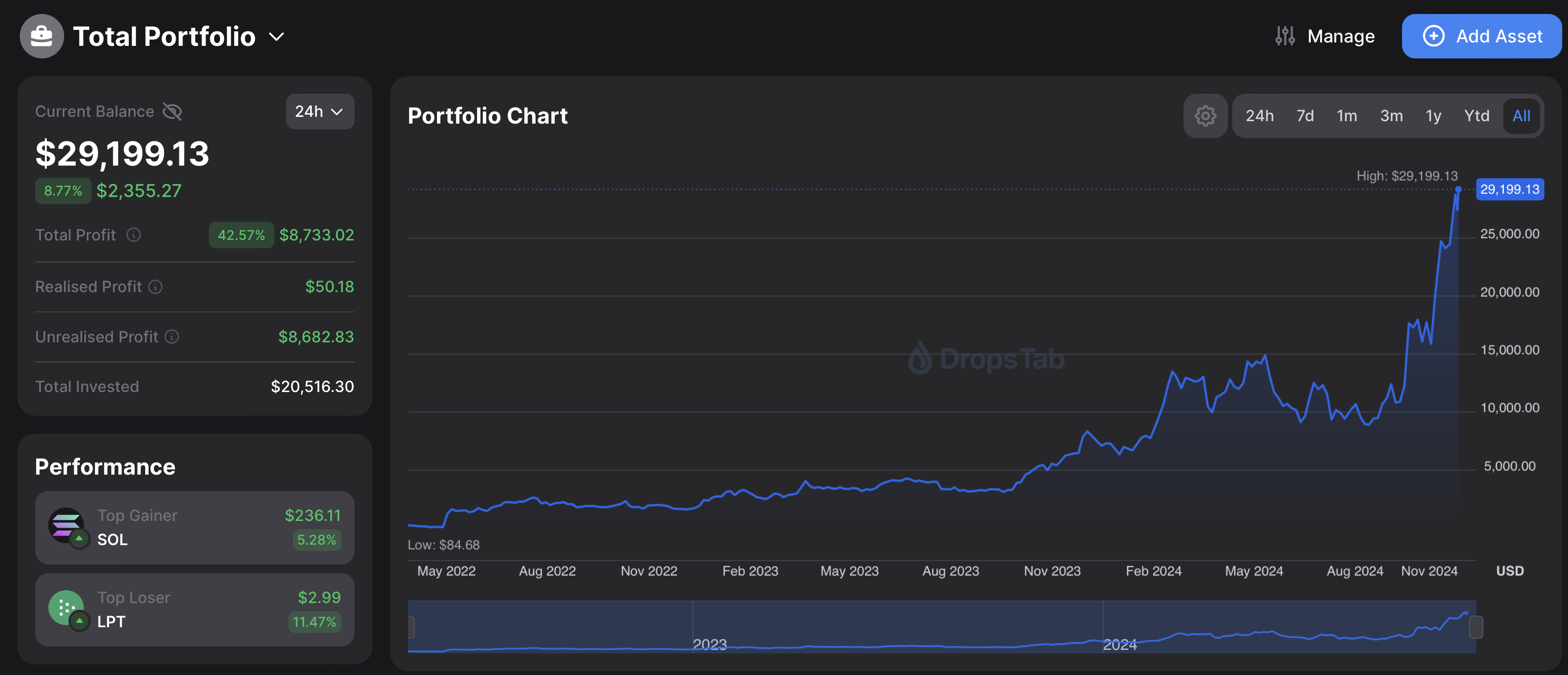 >>1164372 Мало данных. Может у тебя изначально 1к вложен и сейчас 33х, а может 60к вложил и в посадке 60% сидишь. По моим прикидкам альта с текущих В СРЕДНЕМ минимум 250-300% сделает. Именно В СРЕДНЕМ.