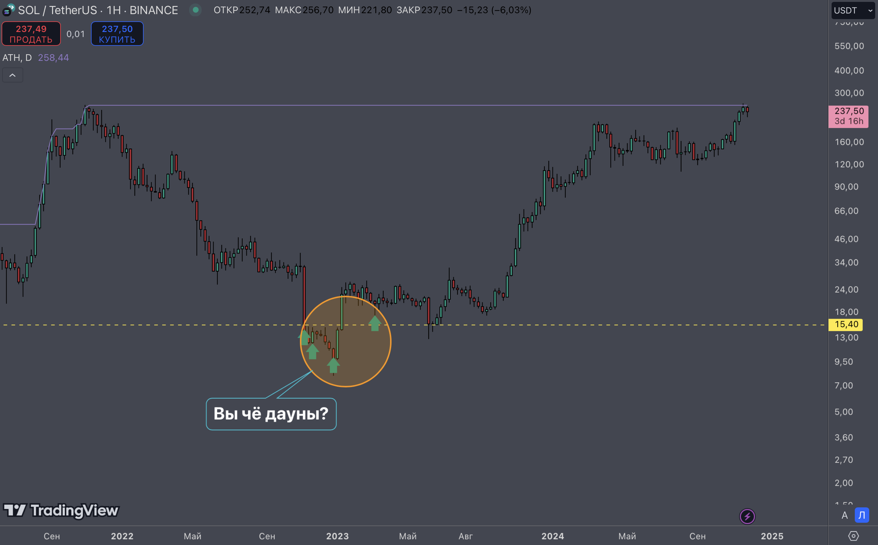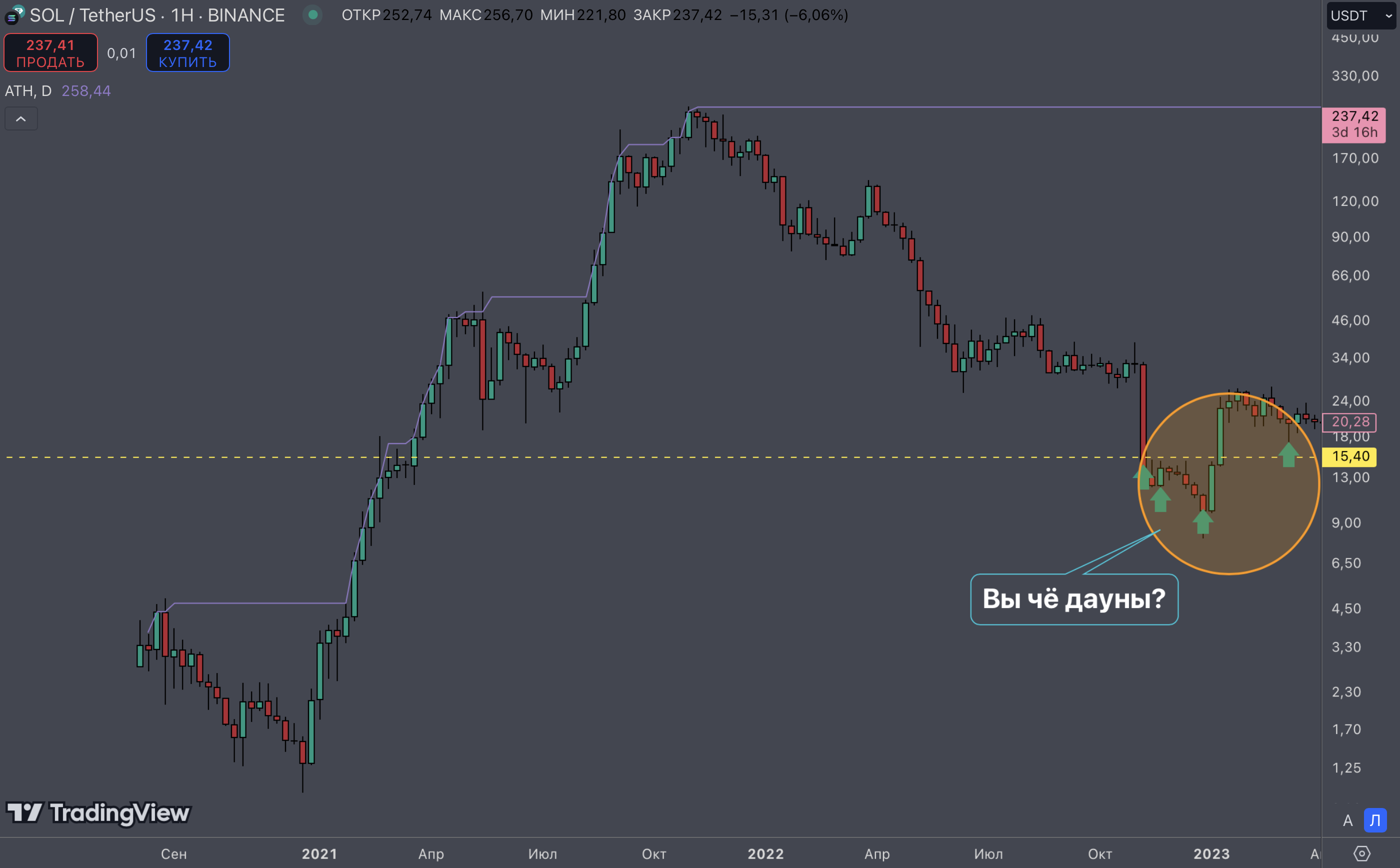 >>1166366 >В этом и дело, что Солана тогда и Филя сейчас на отличной цене для покупки Ну хз, сравнил конечно хуй с пальцем. FIL укатался под дно, Sol под дно не укатывалась, причём таааак долго как FIL. Я не ебу в чём прикол покупать нисходящий шортовый график, наверное получить практический опыт по уроку "Что значит стать чьей-то выходной ликвидностью". Разве что так. В любом случае я бы не покупал такое говнище с дауном на маркетмейкере и без маркетинга. За счёт чего он должен расти, даже в теории в фантазиях? Маркетмейкер бездарный хуесос, актив слабый, график нисходящий, маркетинга нет никакого. За счёт чего актив будет расти? Сам себе ответь.