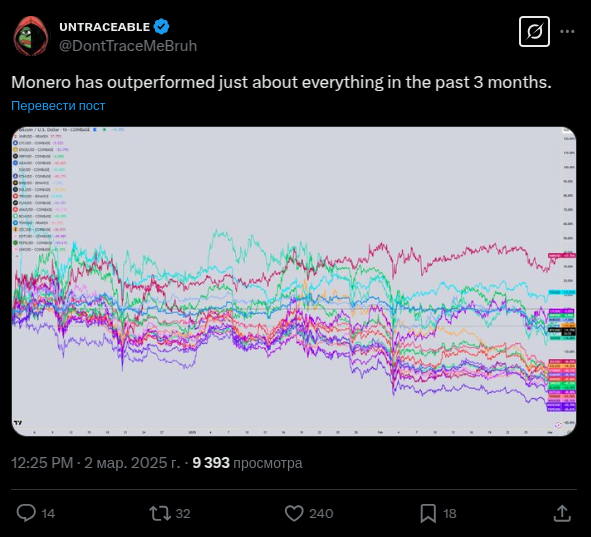 Монеро осталась одна такая единственная из приватных монет, которая развивается. И на компромиссы не идёт.