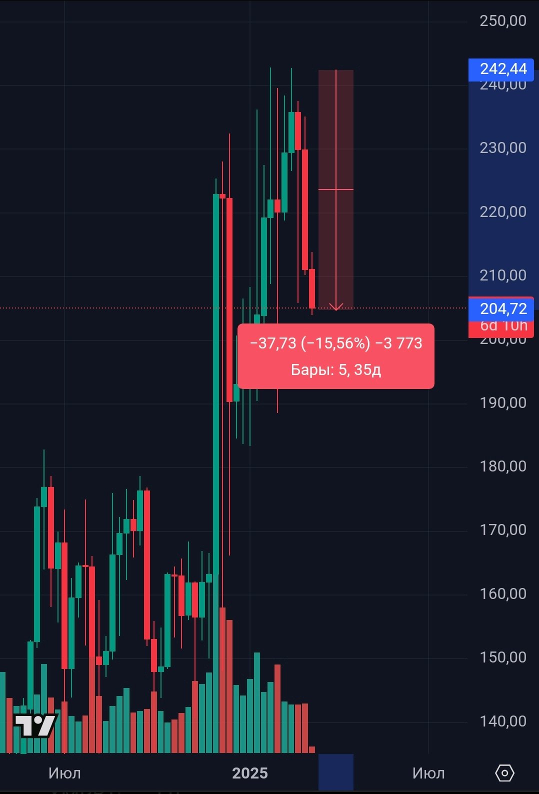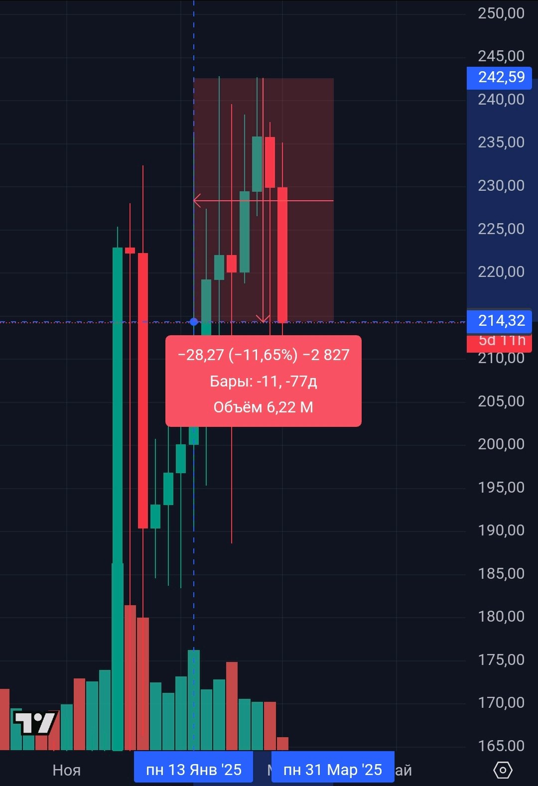 >>1224963 Скорее 160, но да, это гараздо более реалистичная цель, чем даже просто 270. 240 пробить не смогли с которой попытки, походу это и был локальный хай, а теперь можно уебаться на дно (как раз, когда биток нормальную коррекцию сделает) и покрабить еще годик 160-200, как раньше крабили 130-180.