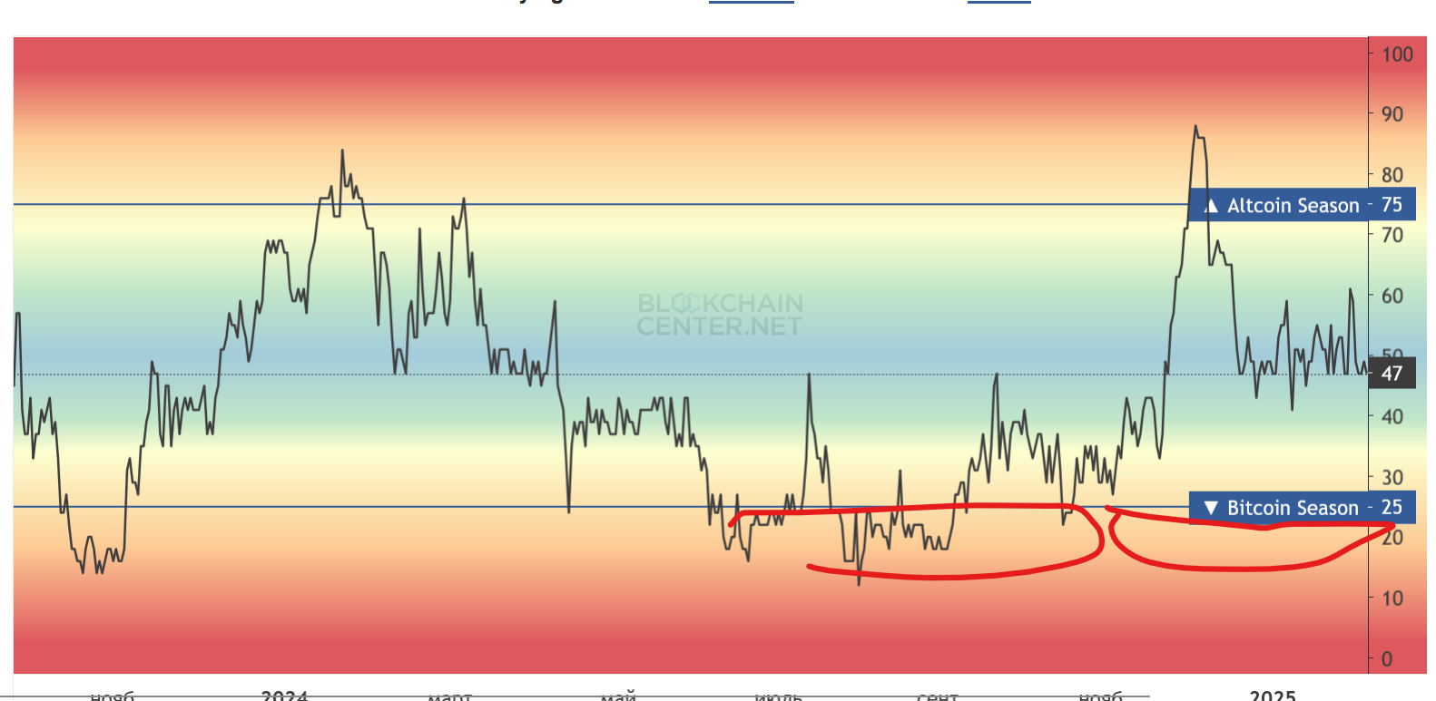 Альтсезона не будет только по двум причинам: концентрация всего денежного потока на BTC, и тяжеловесных альтах по типу SOL & ETH.
