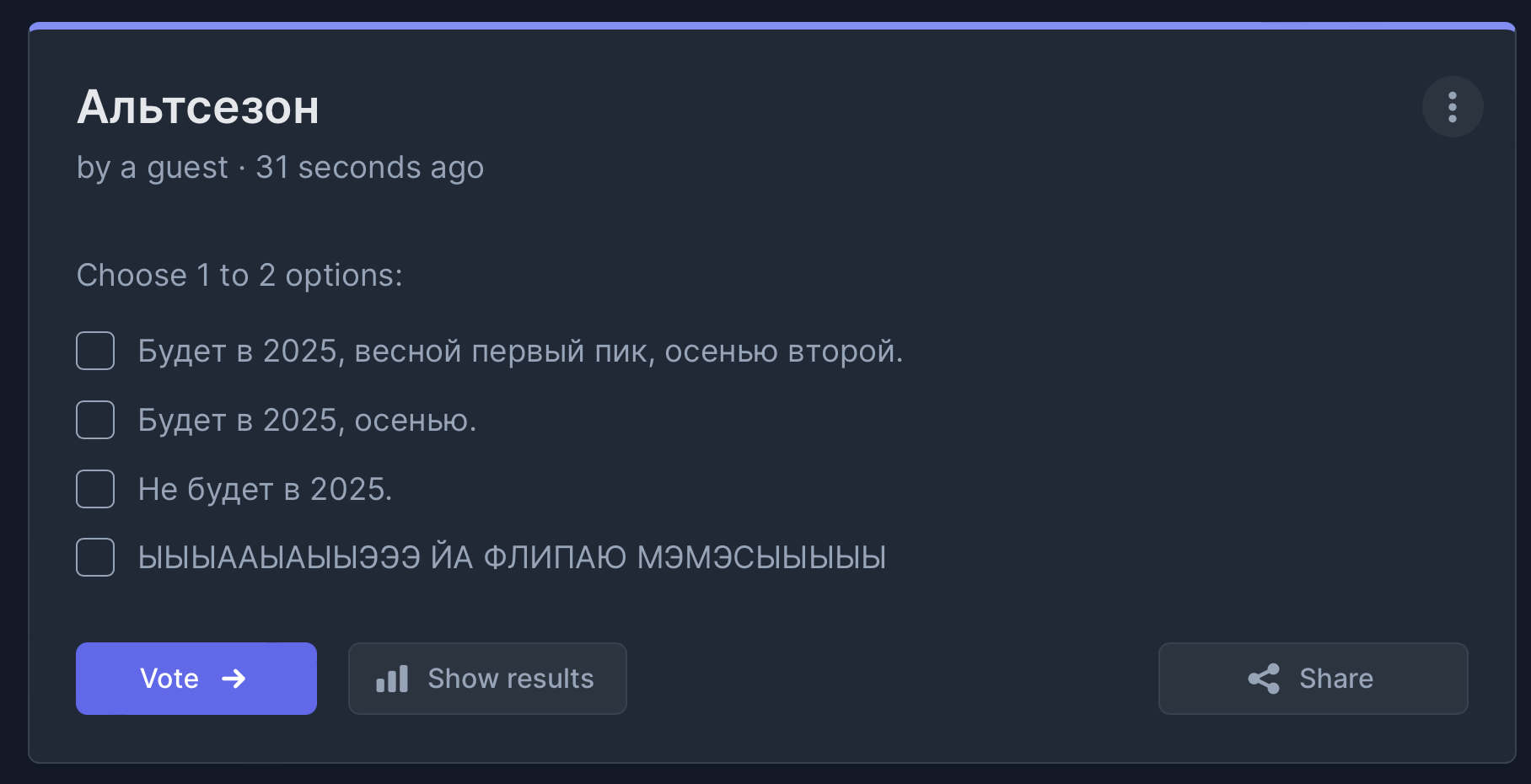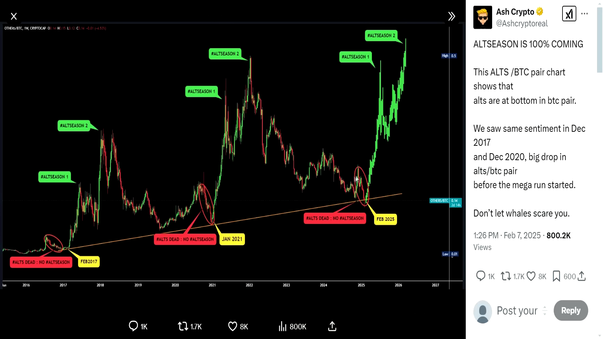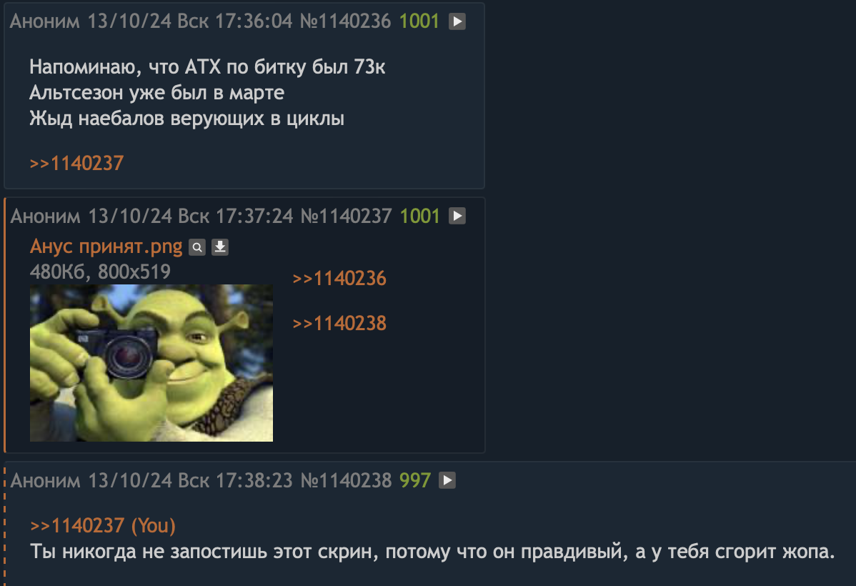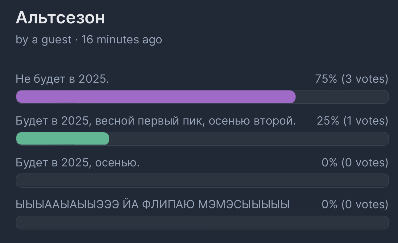 Лол, я реально начинаю верить фотографу. Буквально 95% постов тут от тех, которые рьяно пытаются доказать, что альтсезона не будет. Один шрек и 1,5 подсоса что-то в защиту пишут.